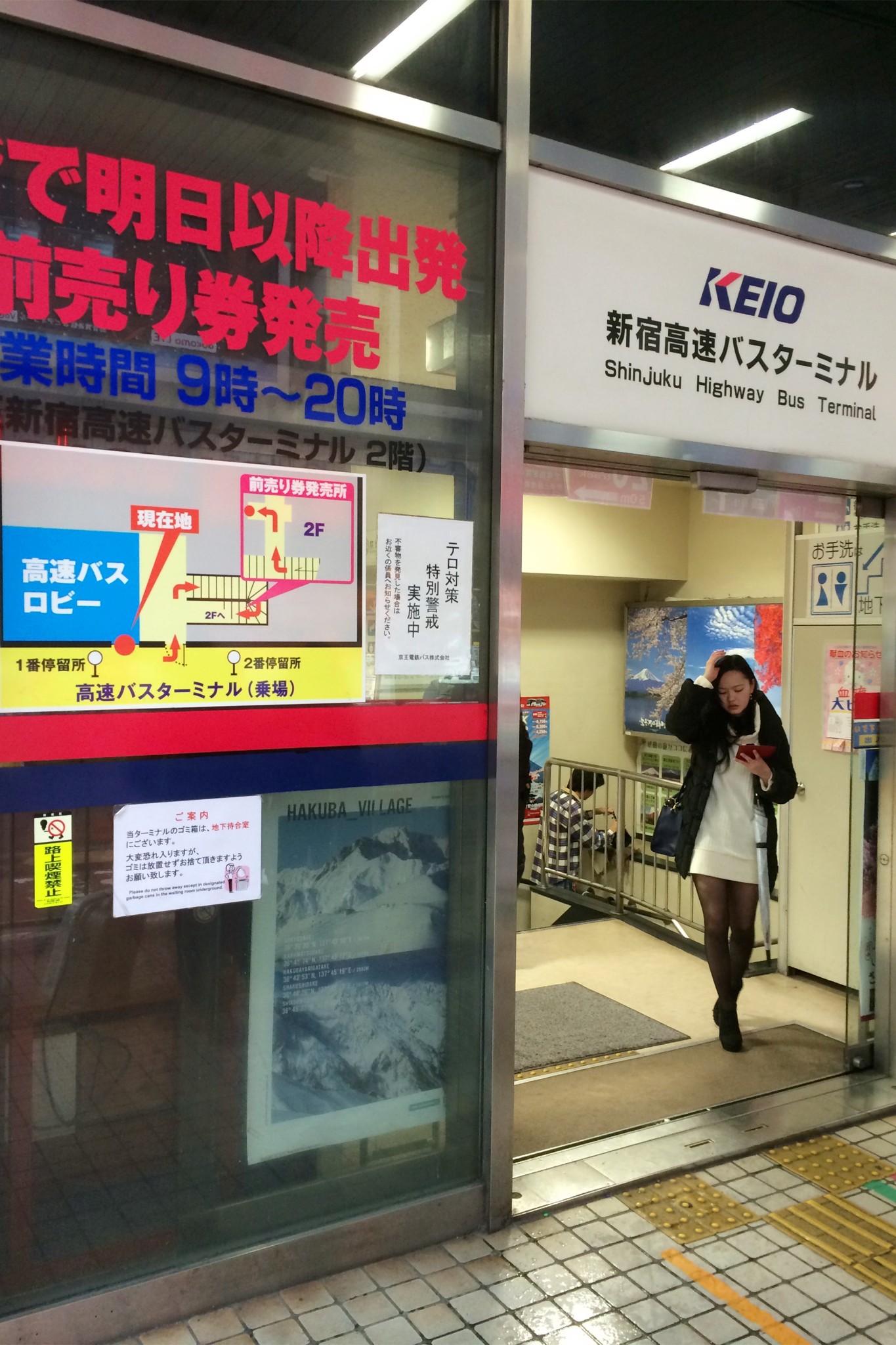 另外提一下 新宿站是很大的 包含了地铁站 火车站 巴士站 甚至是商场 这个高速巴士站很不起眼 但找起来却并不费力 因为他就在新宿友都八喜的正对面