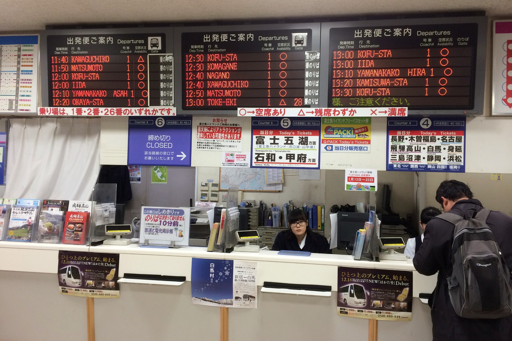 新宿高速巴士總站官网(可以查看新宿站往返河口湖的高速车次时间 预订座位 还有车站的交通信息和周边位置地图):https://www.highwaybus.com/html/gp/foreign/zh1/access/index.html