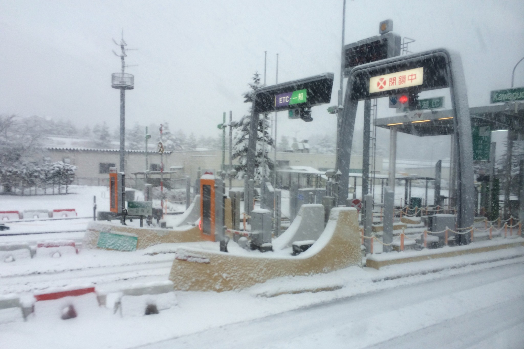 不知道是不是我们的祈祷起了效果 在开出东京市区大概半小时后 大雨变成了鹅毛大雪 虽然还是有些担心路上的安全 但雪总比雨强吧 尤其是对我们这些南方孩纸
