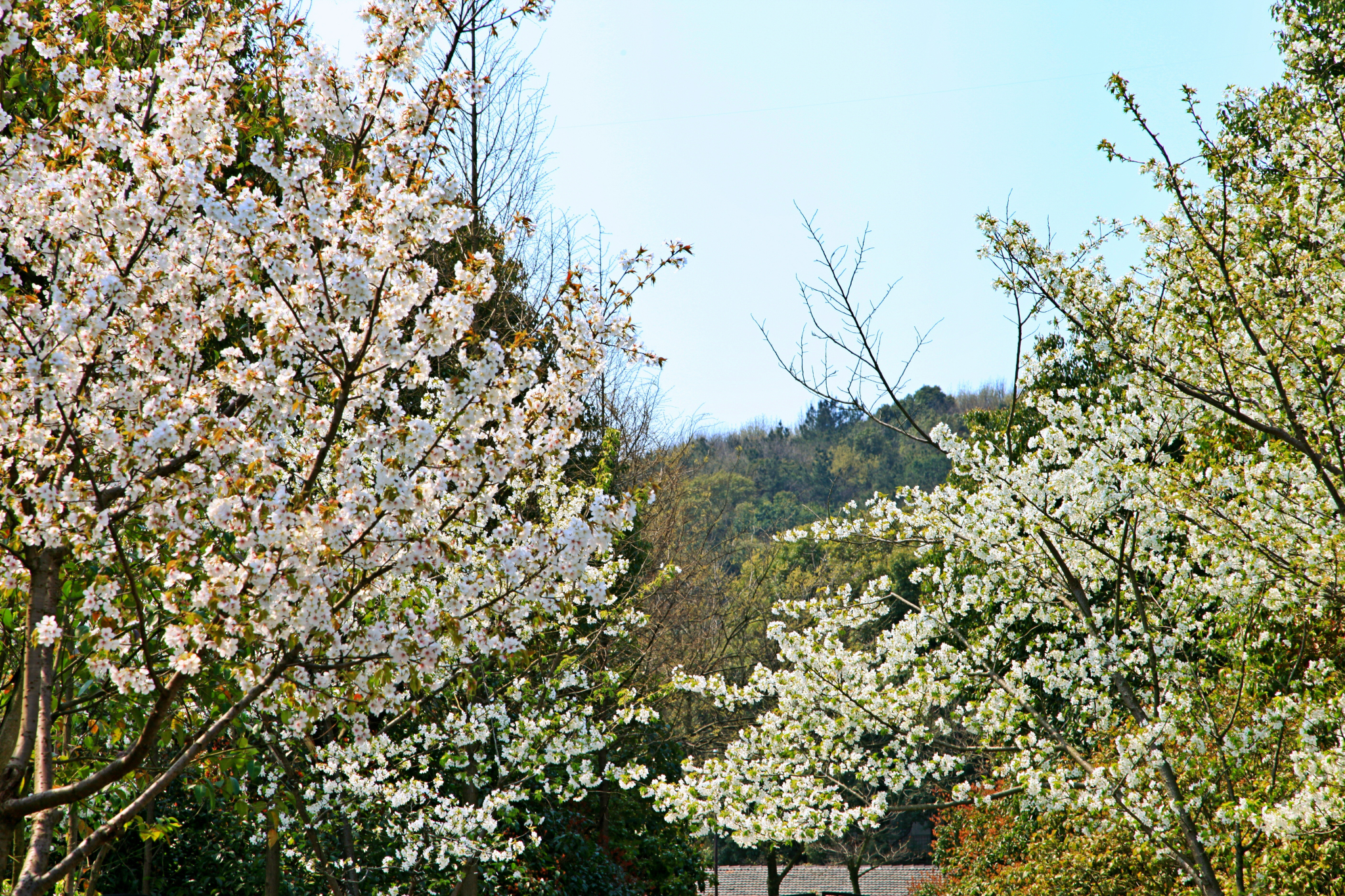 同样免费的地方,和无锡宝界山林公园不是同一个地方哦,这里有个酒店,但只接待单位和团体,里面的樱花都是白色的,衬着蓝蓝的天很好看