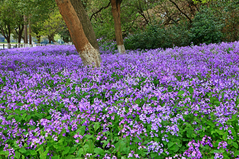 去的时候二月兰开的正盛,大片大片的紫色小花风中摇曳
