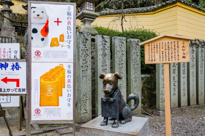 七百多级的本宫其实低头一鼓作气爬上去也用不了多久。中间看到了这个代参狗,不是代餐狗哦。封建时代的日本实行很严的户籍管理制度,农民和土地是从生到死都绑在一起的,你不能说你今天想去旅游就出门了。一般都要先跟上面申请个通关文牒一样的文书,到了每个关口都出示一下,有的时候上面领导心情不好根本就不给你发这个通行证。其实不只是农民,就连中下级的武士阶层都要过这么一关,像大河剧“龙马传”里三菱的创始人、出身低级武士家的岩崎弥太郎想要跟龙马一起去江户长见识,跑到地方领导那里求爷爷告奶奶都没用。然后还有各种杂七杂八的事儿,比如说你放心不下家里的地啊家里孩子没人带啊出去玩家里的喵星人谁来伺候balabala。其实这个状况放在现在也通用啊,比如说猫前两天跟puma商量去欧洲玩,然后puma就各种嫌麻烦:签证麻烦请假麻烦开材料麻烦balabala。拜日本人丰富的想象力所赐便出现了代参狗,就是说你把要跟卡密撒嘛说的话写个小纸条绑狗身上,然后再放点钱在汪酱身上的兜里,让那些拿到通行证结伴去参拜的人代为照顾一下。猫看到网上有人问为啥是代参狗没有代参喵,呵呵你说呢......