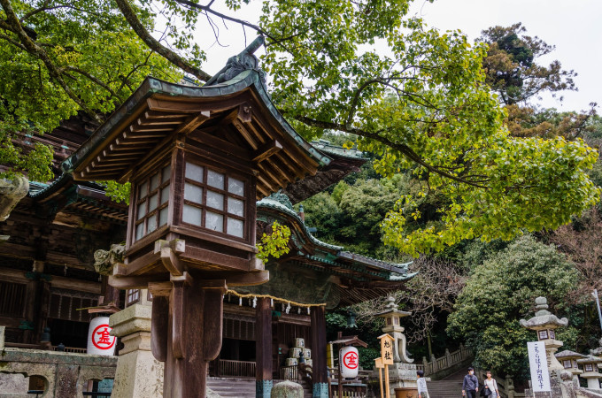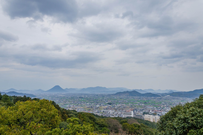 到达本宫后猫深吸一口气,马上跑到一边的展望台去看风景了。日本人喜欢把那些比较对称的山叫做XX富士,所以这个左边那个布丁一样的山头就是讃岐富士了。说到讃岐,这是高松县在古时令制国时代的名称,你看四国嘛说明这个地区在古代是四个令制国——讃岐国、阿波国(德岛县)、伊予国(爱媛县)和土佐国(高知县)。很多人觉得这些古时候的名字都意境满满,什么尾张、美浓、出云、骏河、陆奥,听起来就感觉像是姑苏之于苏州、金陵之于南京那种feel。