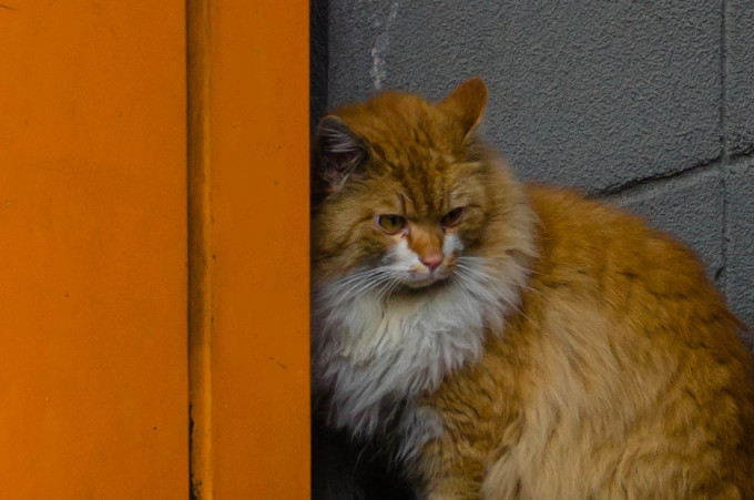 去丹下的县厅时手机没电了,只好靠着猫自带的过目不忘+东西南北定位导航功能一路摸过去。此时街边小巷飘来一个不羁的眼神。