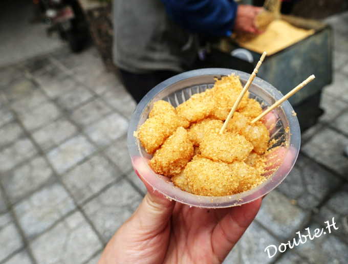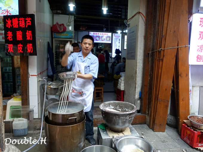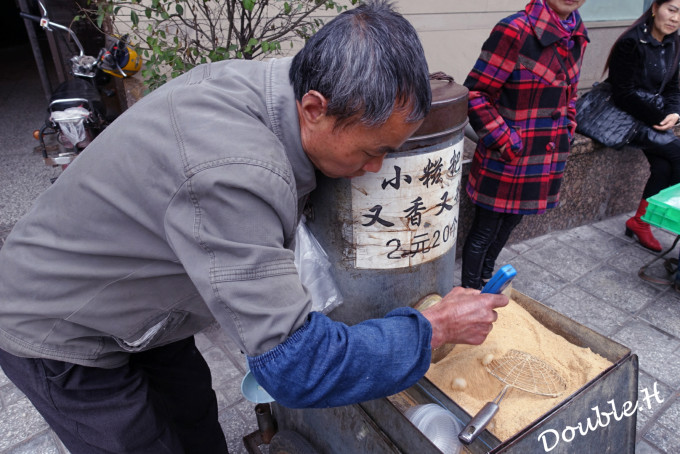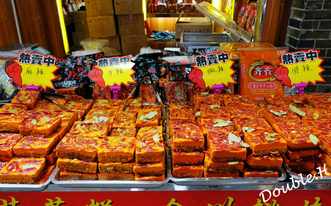 由于前一天晚上的飞机延误,一直颠簸到清晨六点多才到酒店,昏睡到中午才起来觅食,眼睛是肿的,所幸胃口还是不减。路过千厮门大桥看到一阿伯在买的小糍粑,香糯可口,重庆真的很多这种特色小吃。