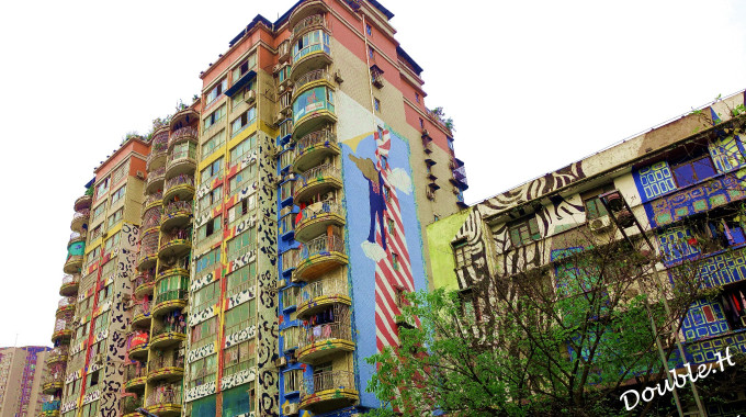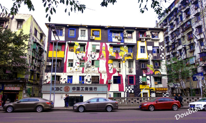 洪崖洞步行街那边人实在太多了,走到哪里都是人人人,果断选择去一个比较文艺zhuangbility的地方—四川美术学院。川美就在涂鸦一条街上,在中国看到这样一条满是涂鸦的楼房,也是挺稀罕的。整条街的显得挺古老,可能是受到周边美术氛围的熏陶,给人感觉这条街道很安静,艺术气息浓厚。