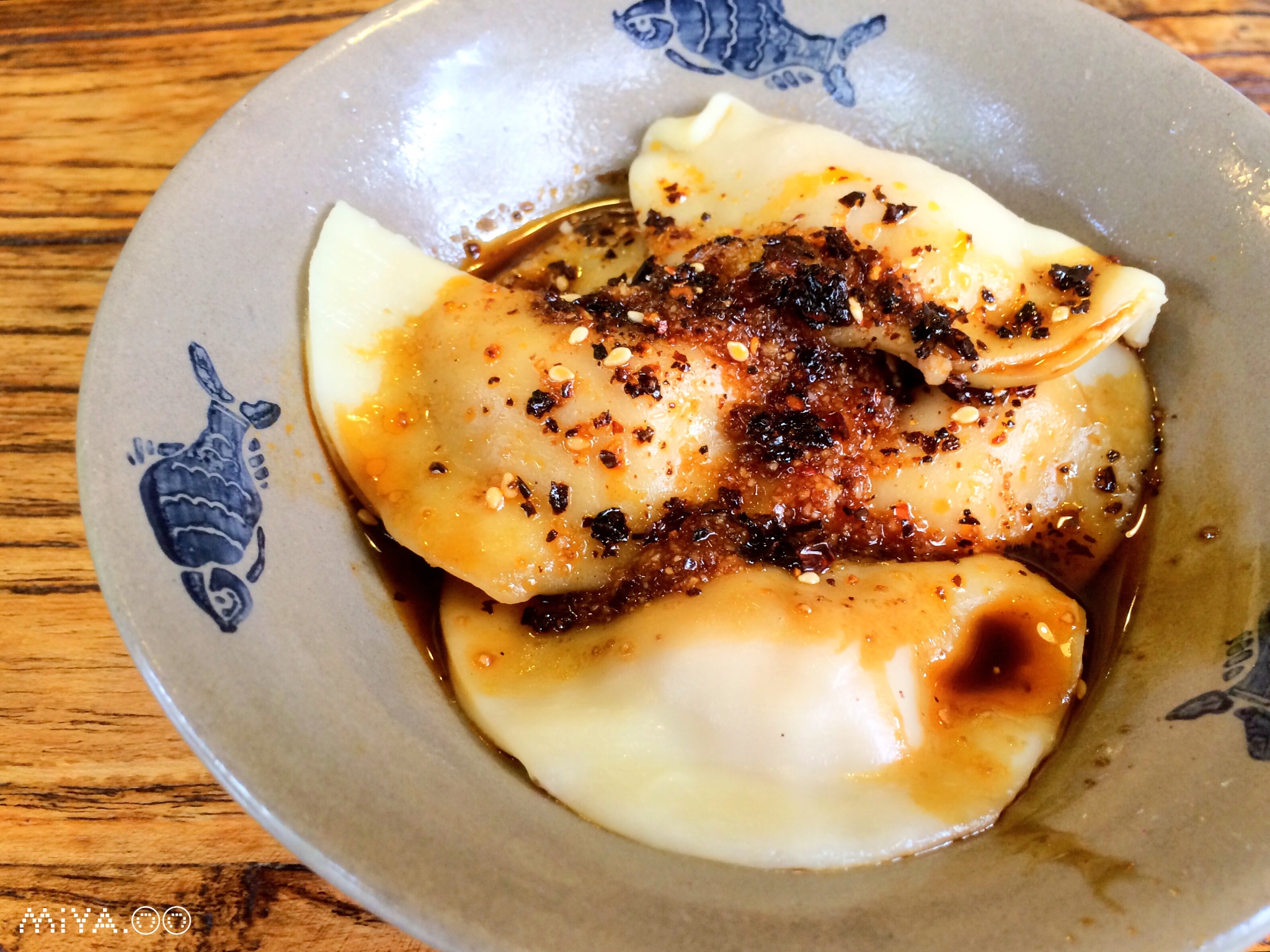 【鲜椒抄手】成都所有的饺子 面条 都可以按自己的食量购买~ 由于第一顿 我们悠着点 都买的是最小的量~ 抄手皮滑滑的 不算辣 内馅比较特别 可以一尝~