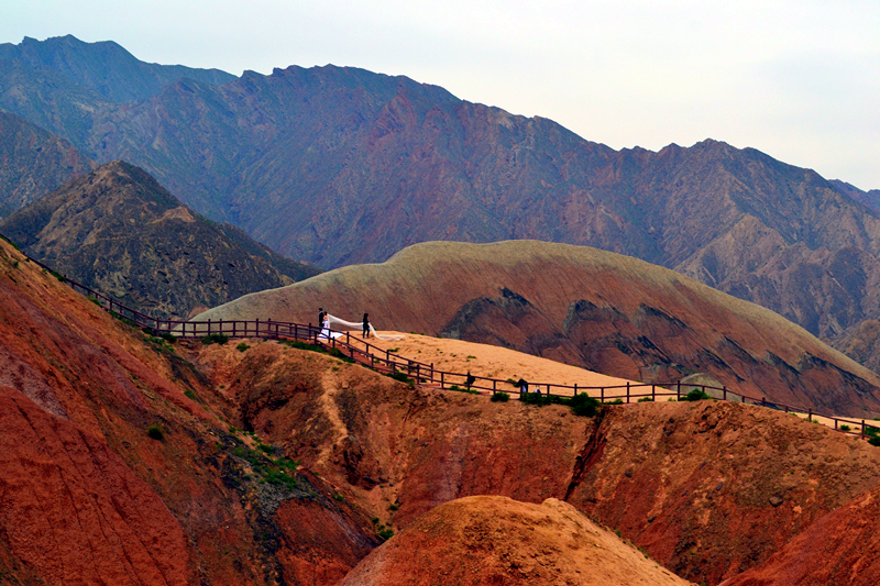 张掖丹霞地质公园远处在拍婚纱照...我只想冲上去问他们 冷不冷!!!