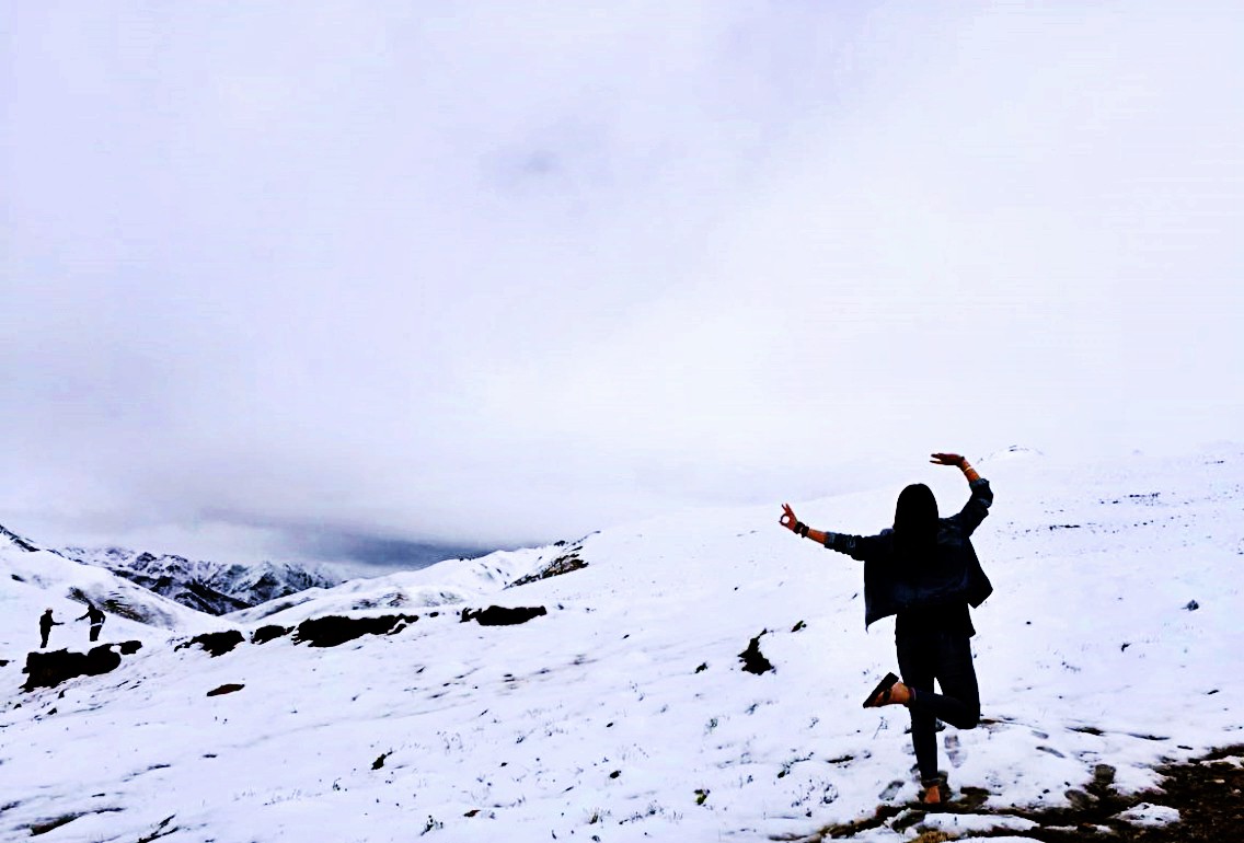 祁连对于没有见过雪山的孩子...当然要玩起来,