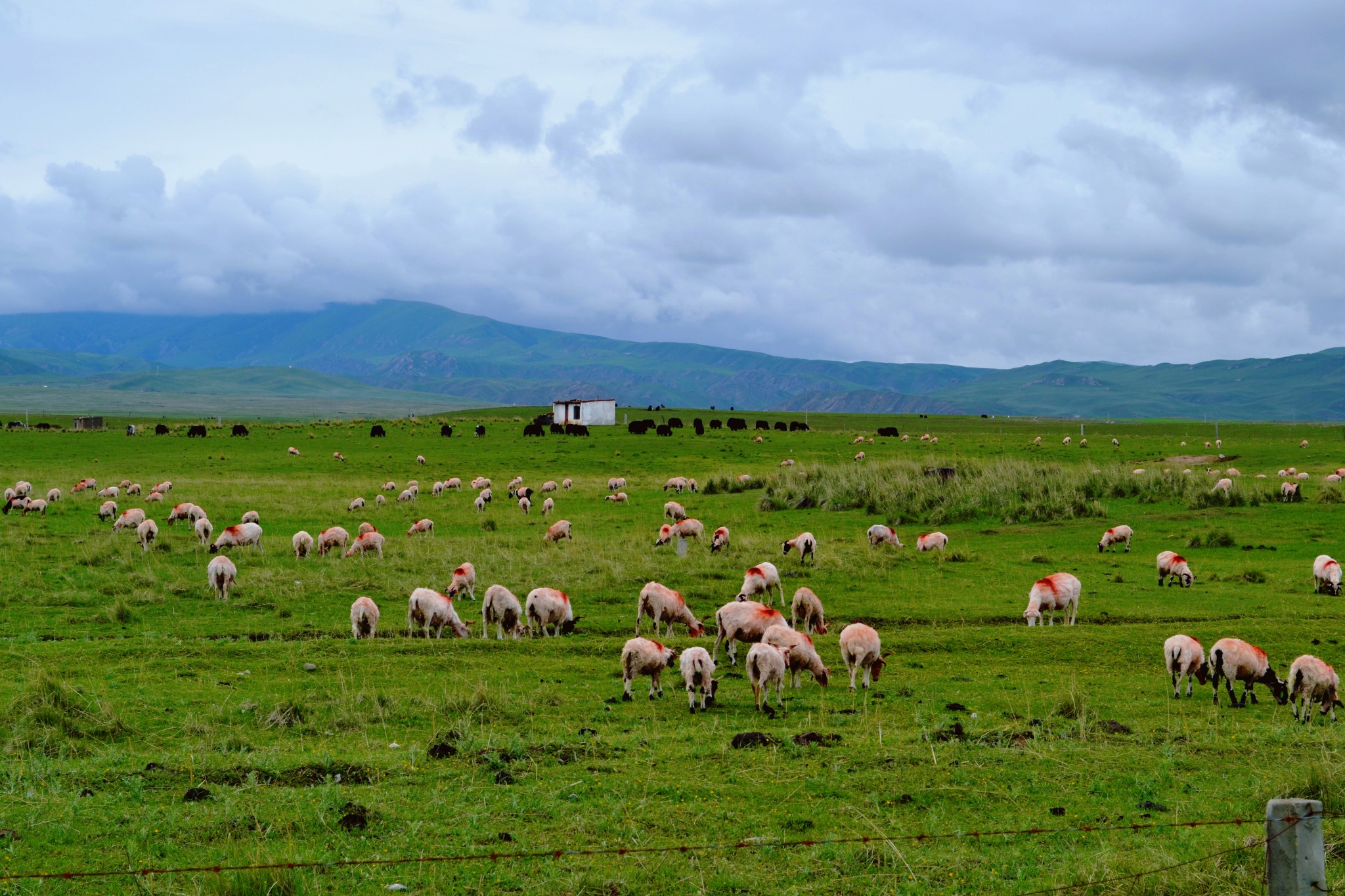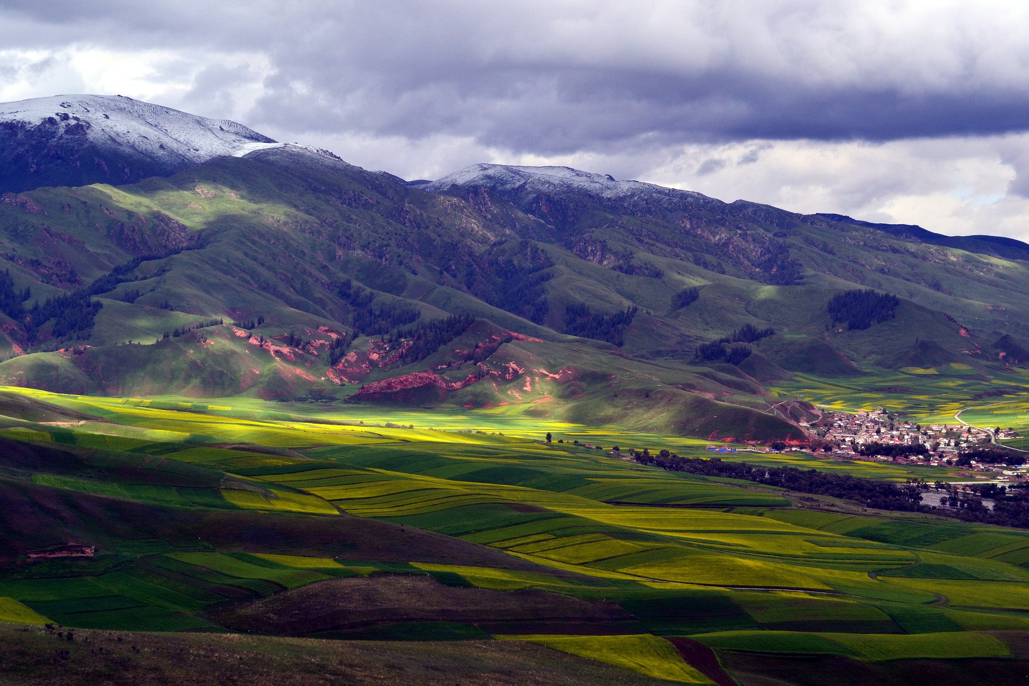 祁连卓尔山。 草原上面是雪山,映盖上的是云的影子。