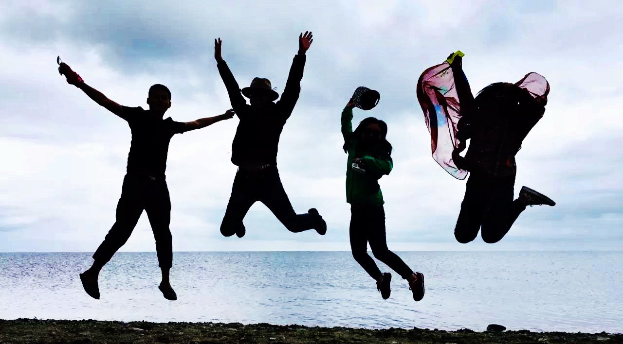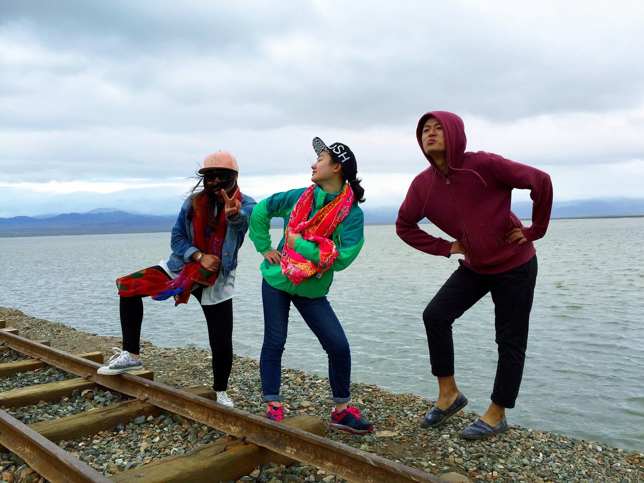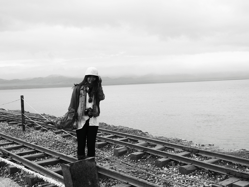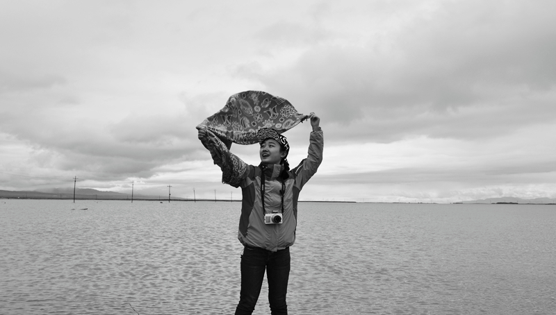 青海湖遇到两个婆婆一直喊我们跳...要给我们拍,还一直给我要求各种动作:你要把 纱巾甩起来...不对感觉不对...要酱紫甩...嗯这张还可以。= =
