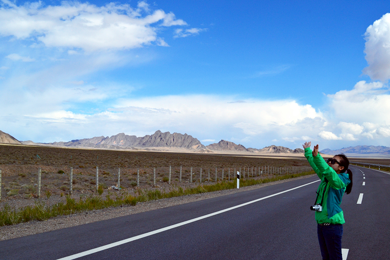茶卡盐湖过了盐湖,也不知该说运气是好还是不好....到柴达木盆地的时候天气慢慢变晴,太阳也渐渐剥开了乌云露出影子~ 对于第一次见到这么蓝的天的人,果断下车在公路上玩了起来。