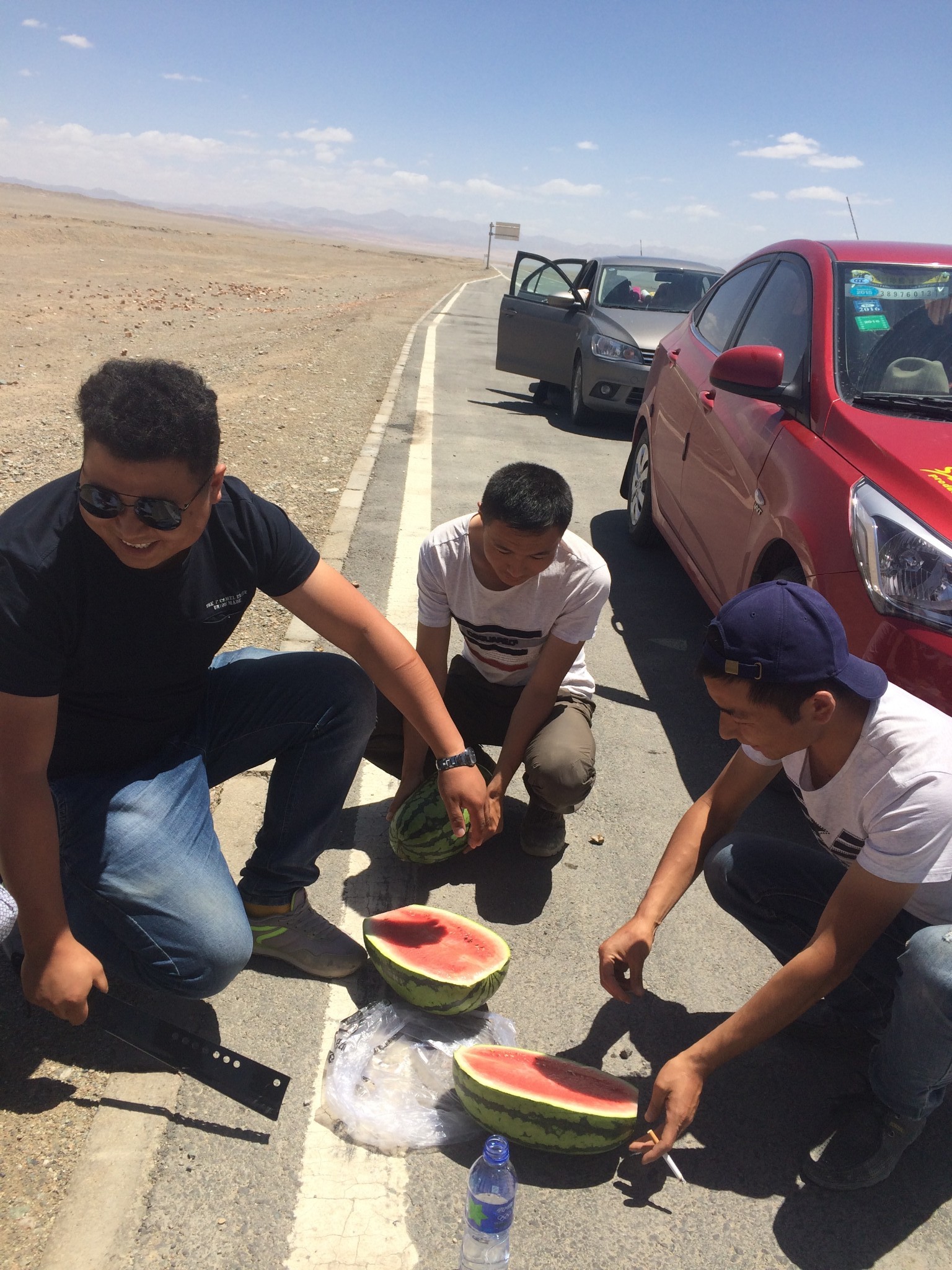 雅丹林在高速公路上吃瓜,完了再来比比谁的皮扔的远当然也是人生第一次