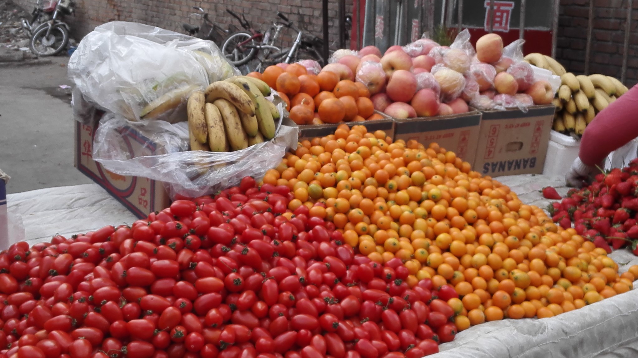马路边很多推车卖水果的。。。
