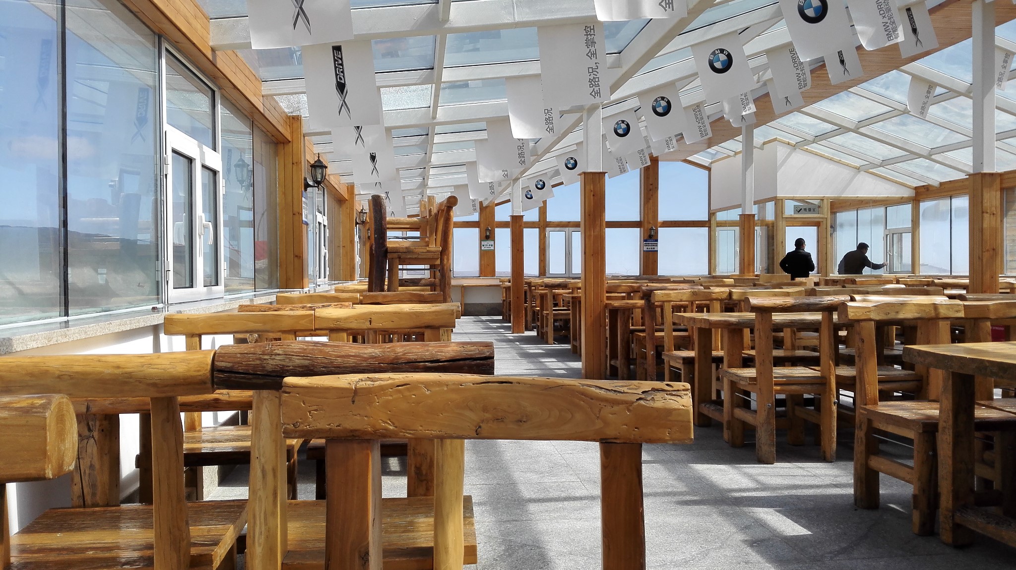 山顶的万龙木屋,累了可以休息和吃东西。。。不过价格不便宜。