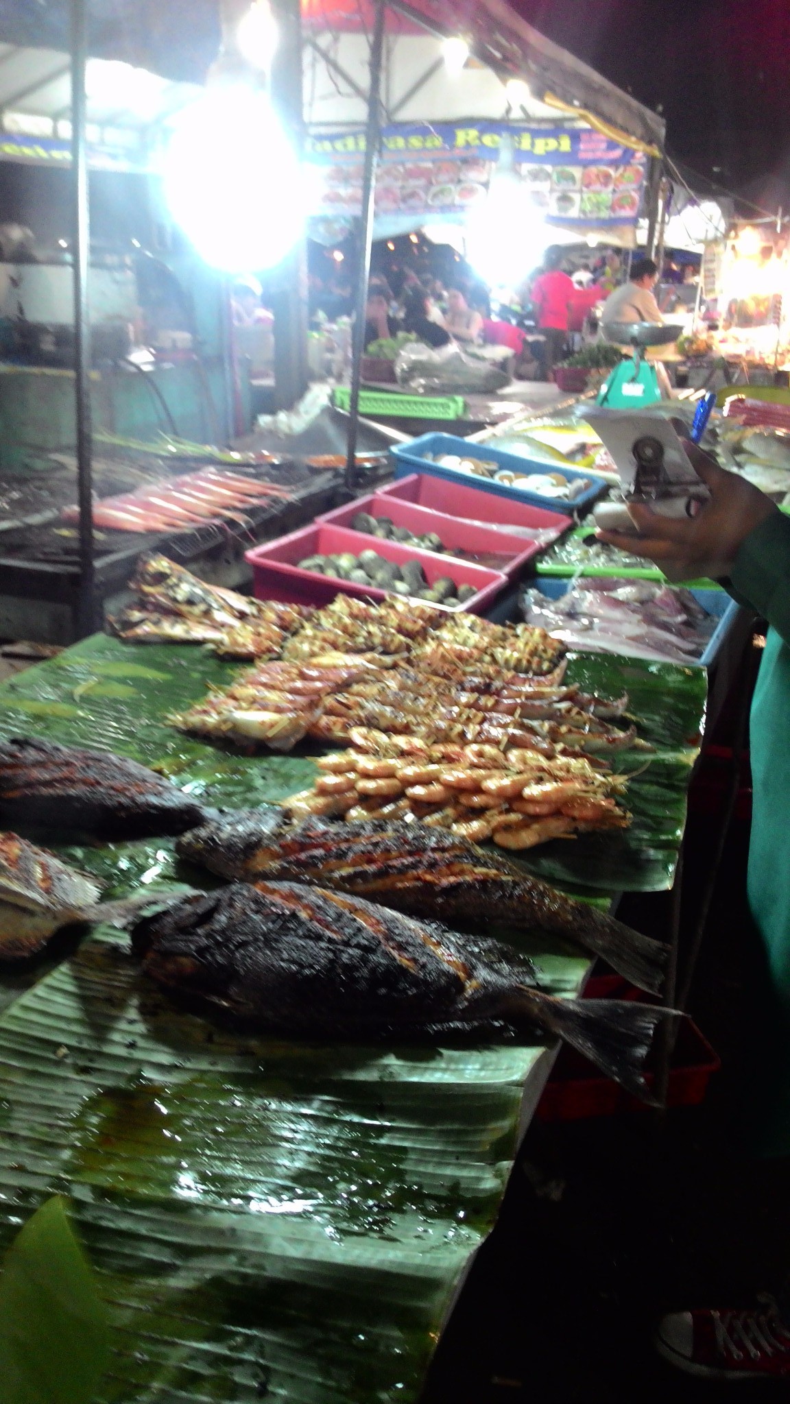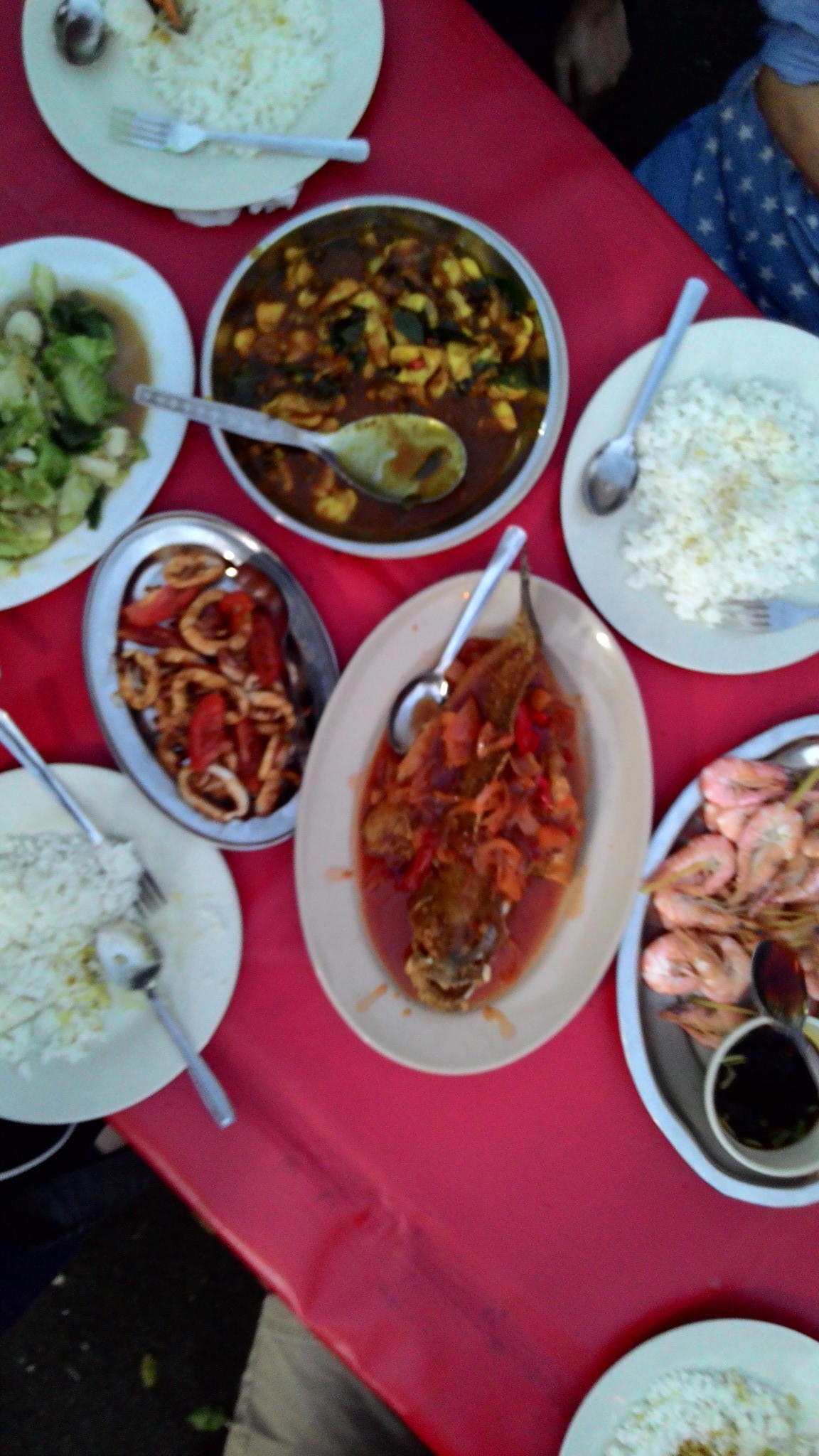 下午4点,我们乘搭小船会到亚庇市,马上回到旅馆洗澡和休息。大约傍晚6 点,我们步行到离酒店700米,位于海边的菲律宾市集。菲律宾市场基本上是个海鲜煮炒摊位街,时间大约傍晚5点开始至深夜,分两条街。卖的是附近渔民刚刚打捞上来的海鲜。这里的海鲜cp值高,新鲜且便宜。龙虾一公斤才300人民币(包加工费),鱼和蚌类60至80人民币不等,相当便宜。另一条街则售卖烧烤,如鱼,虾,鸡翅(一个才2人民币),相当便宜。吃吃海鲜,吹吹海风,就是这种感受。照片里有鱼,虾,乌贼,蚌泪,贝类,一共170马币(330人民币)。