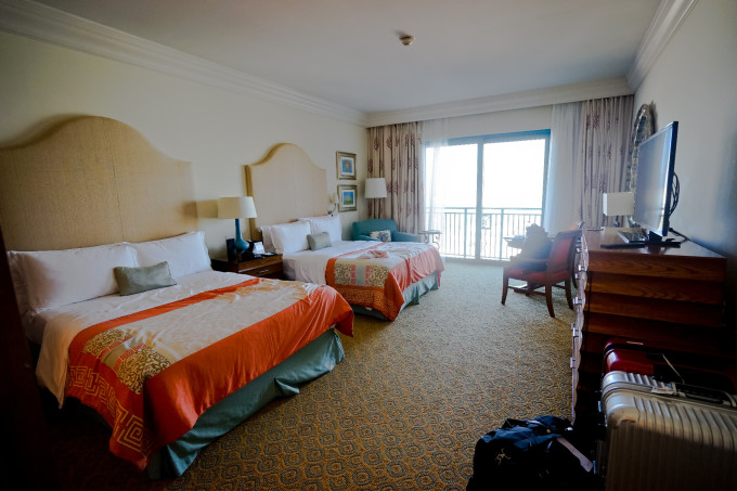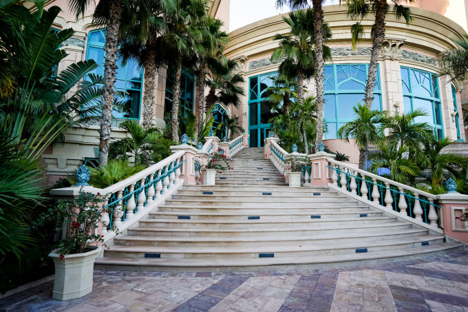 亚特兰蒂斯酒店:选择这家酒店完全是因为它家是海洋主题的,为了能让喜欢海洋生物的爷开心,还有就是里面的配套设施实在太吸引孩子了,这家酒店有2个泳池,一个有65000条鱼的水族馆,还有一个水上乐园,入住的话全都免费不限次数,对于孩子是不是很有吸引力?还有还有,他们家还有海豚湾~!!可以亲距离的和海豚玩耍哦,所以带孩子的这个是首选,我们住了3天都还没玩够~~~相对的缺点就是人多,人很多,这点让喜欢安静的小白同学有点受不了,说是感觉住进了游乐场,呵呵,大多都是拖家带口的,中国人也很多。还有就是建筑造的不符合我的审美,好吧,为了它的配套设施这些小瑕疵可以忽略不计,亚特兰蒂斯的餐食很不错,特别是藏红花餐厅,东西很丰富哦~~~