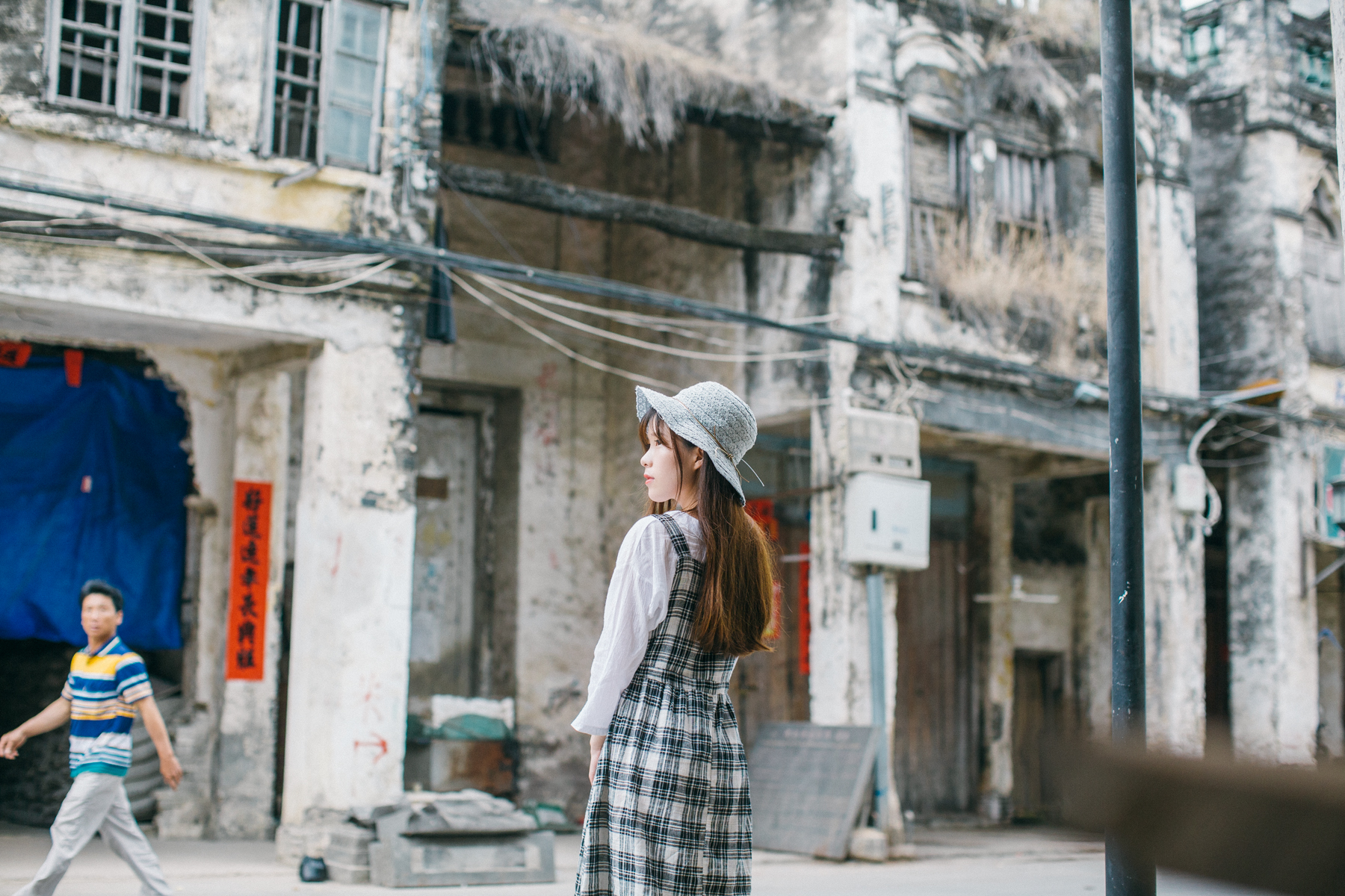 穿梭在老街的廊柱间,此时不知身在现世,还是轮回于前世。