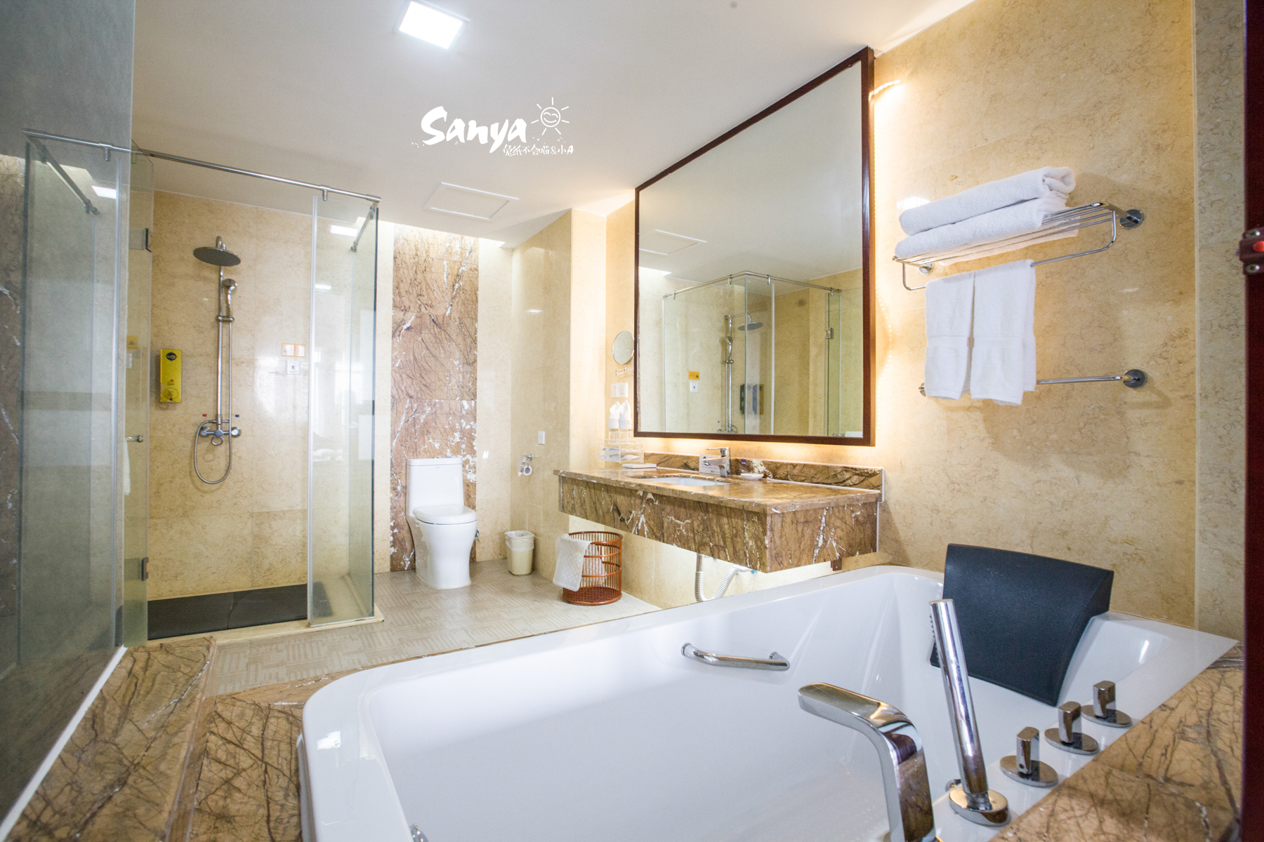 上一次来三亚选择了蜈支洲岛,因为岛上昂贵的房价,最终没舍得住。这次去了住宿相对低廉的分界洲岛,弥补上一次没能深度游岛的遗憾。分界洲岛相对蜈支洲要小一些,整个岛只有一家酒店——分界洲海钓会所,没错,这就是酒店的名字,不是什么钓鱼俱乐部喔!这个酒店的房型非常多,价格在500~1500之间,一个房间送两张上岛门票以及三亚市区往返码头的大巴车接送,赶上特惠活动时甚至还会送你岛上一些项目的门票,非常划算。在众多房型中,我们选择了价位第二便宜的山海阁,不到600元/晚,位于整个岛的高处,一线的观海视野,房间宽敞舒适,要说缺点的话大概就是隔音不太好了。