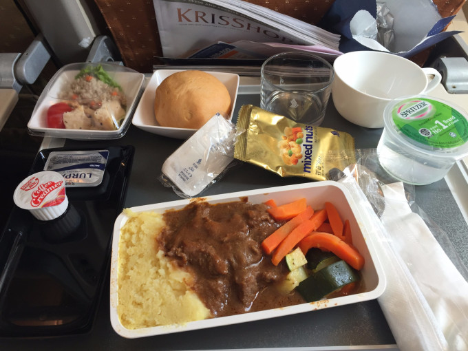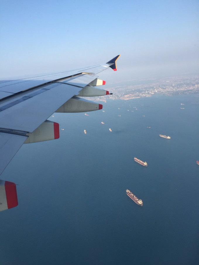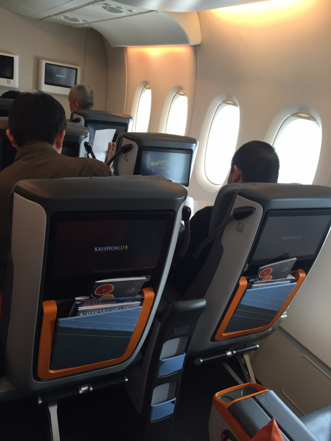 下午两点多的飞机,一点四十就开始登机了,我们购买的是传中说大飞机,座位舒适宽敞又先进,机餐正点,服务一流的新航。一颗期待满满的心登机后果然没让我失望,每个座位都贴心准备了一个靠枕和毛毯,每个位置前方座椅都是触摸屏,可以听歌,看最新的大片,还能打游戏,四个小时的行程绝对不会是你觉得旅途漫长。不得不佩服新航的贴心服务。
