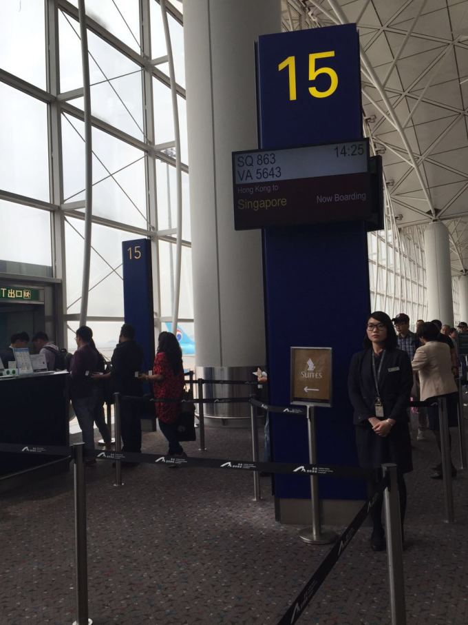 皇岗口岸有商务车直达香港机场,我们选择了永东商务车,5-6人一台车,每人120元人民币,深圳关口需要自己过关,香港关口可以直接在车上过关,除掉过关时间,到机场大概是三十五分钟,非常给力。我们十点从关口出发,十一点就到达机场了。到机场第一件事check-in 要了两靠窗的位置,想目睹海上的坡国。 办理好手续就进去逛免税店啦!