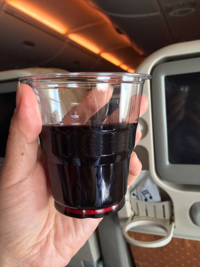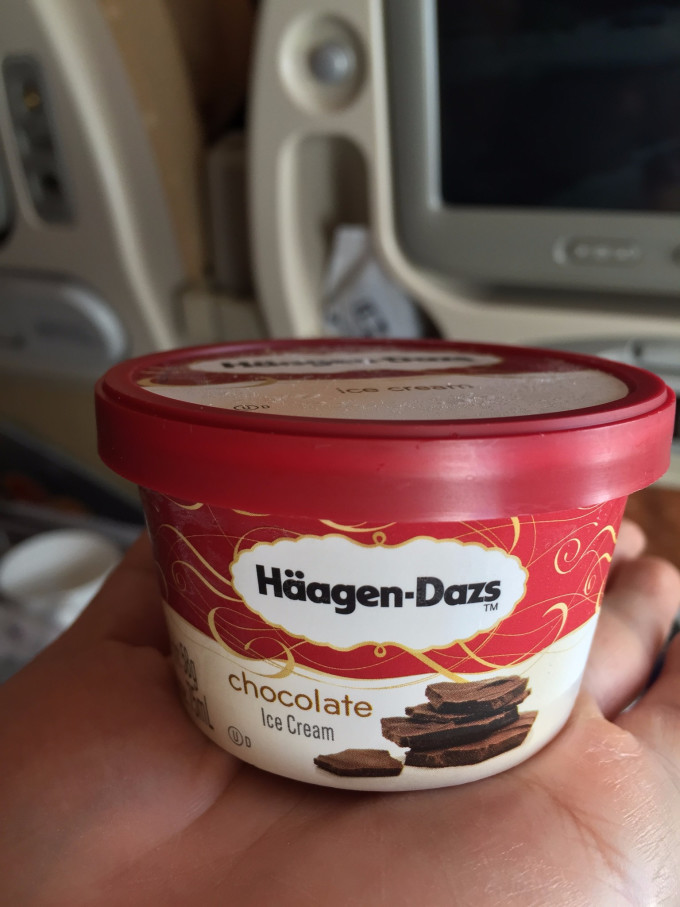 接下来我们看看去前的飞机餐吧,这传说中的飞机餐不是盖的,除了中餐还有西餐二选一,如果你吃的下应该是可以要双份的,就一式一份,哈哈~饮料各种供你选择,还有酒水和哈根达斯冰淇淋,我就来了果汁加红酒,空中用塑料杯喝着红酒,感觉屌炸天啦
