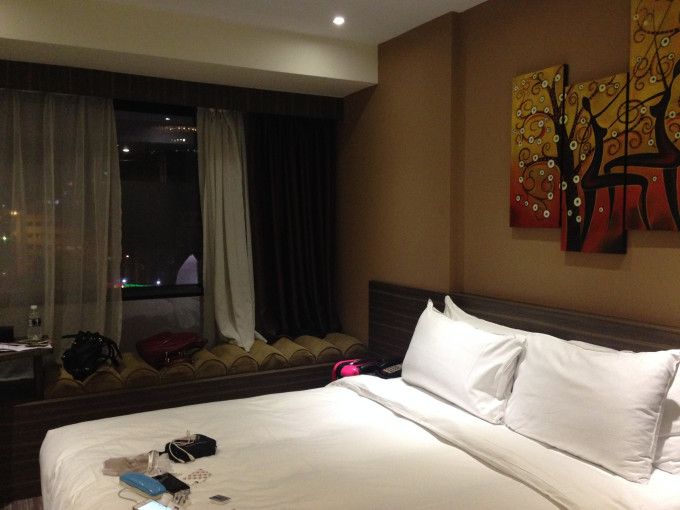 房间很小,我们预定的是双人床,结果去晚了酒店说没了免费帮我们升级了豪华大床房,结果我们俩愣了。唯一欣慰的是冰箱里每天会提供2瓶饮用水,2罐啤酒,2罐汽水,3罐果汁,1罐豆奶,3包零食.