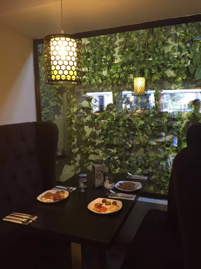 酒店一楼餐厅外面有一个室外休息区,早上每个桌子有一个小蜡烛,可以点一些酒水和饮料,也可以自带冰箱的啤酒去一楼餐厅外的小休息区坐着聊天看看夜景。