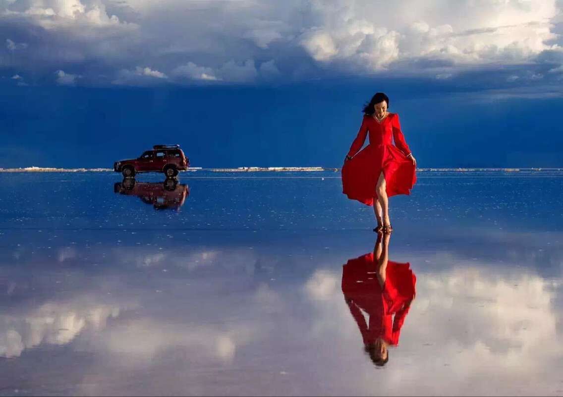 有一天,我想上天,于是我去了玻利维亚天空之镜,在天地融为一体的盐湖蹦了起来。