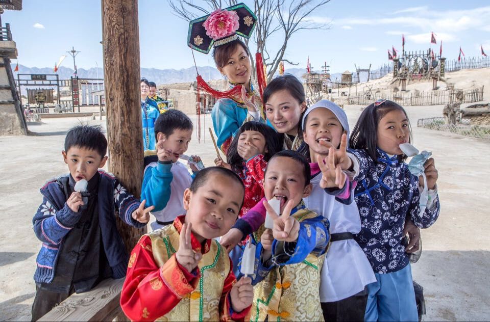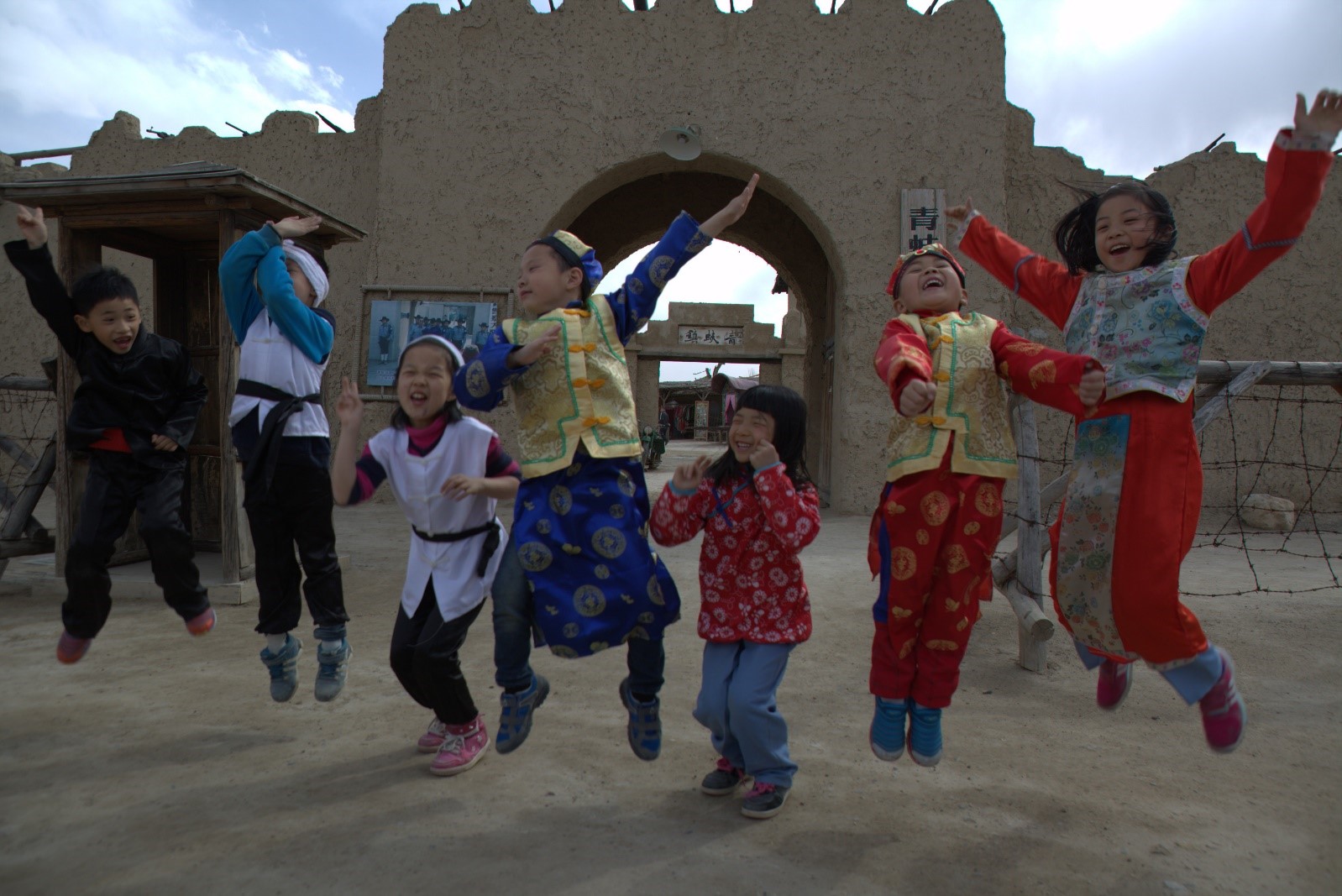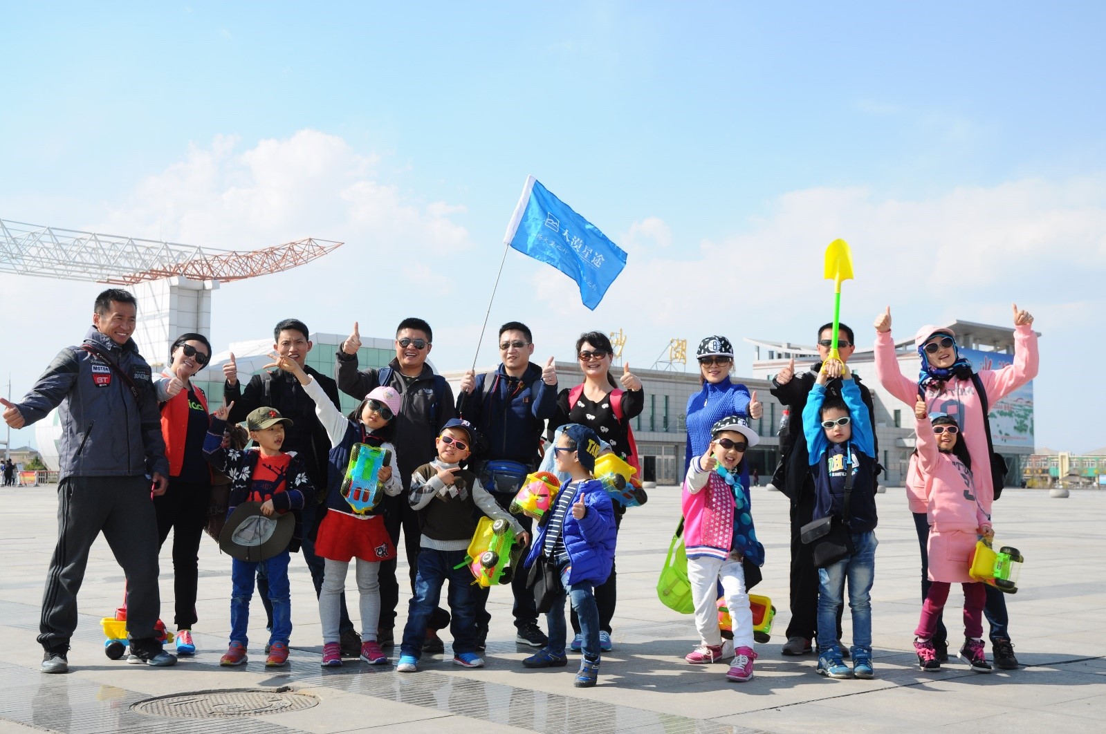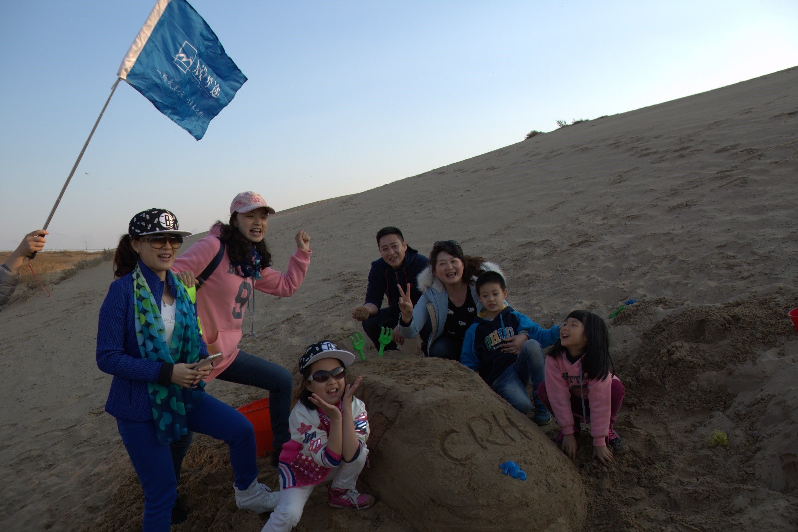 遇见大米不到10分钟,我们就发现这个小姑娘是不折不扣的孩子王,从接到我们的那一刻开始,就已经和孩子们打成一片啦,孩子们居然乖乖的听小姑娘的话排成一排拍了好多照片,在后来的几天里,小姑娘大方得体、体贴周到,老杜我要给她点个大大的赞。照片里画风突出的那个古灵精怪小姑娘就是我家苹果,那个穿大红衣服的小女孩就是老殷的女儿。我们一行7组集体被分成了两个小队,大漠队、星途队,不得不提一下,在大米的引导下大家给各自小队取的队名,大漠大漠,开心快乐!星途星途,专治不服!我们是星途队,口号是老婆想的,听到这个口号,我心里一阵发毛:”没有什么地方得罪老婆大人吧!她为什么喊口号的时候,瞟了我一眼?!!!!!!“