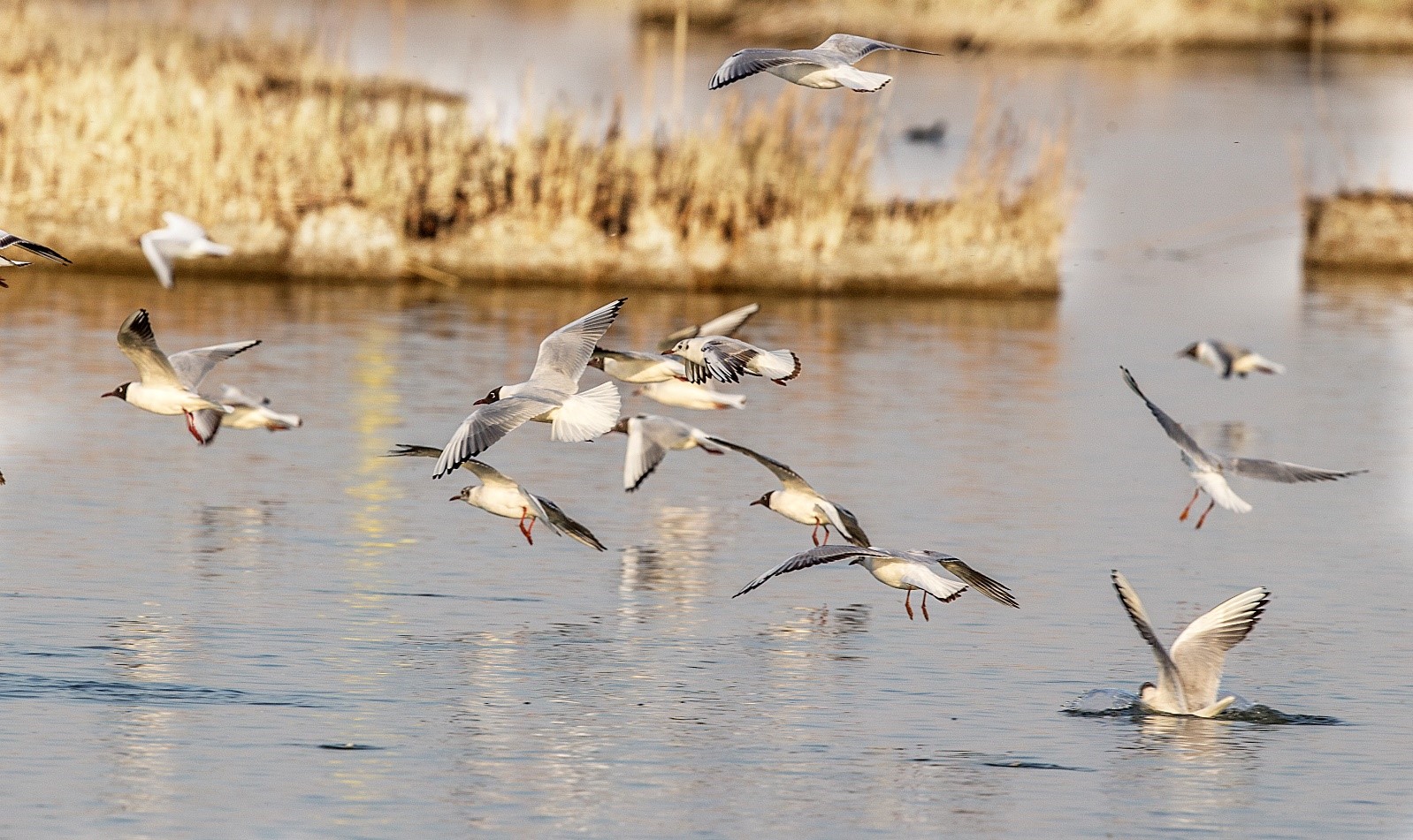 4月份的沙湖,正是鸟儿最多的时节,除了留鸟之外,还有迁徙到这里来的候鸟。这是一条沙湖专门为我们观鸟开设的路线,小船驶进芦苇丛,拐一个弯,惊起了铺天盖地的小鸟,引起一阵惊呼。