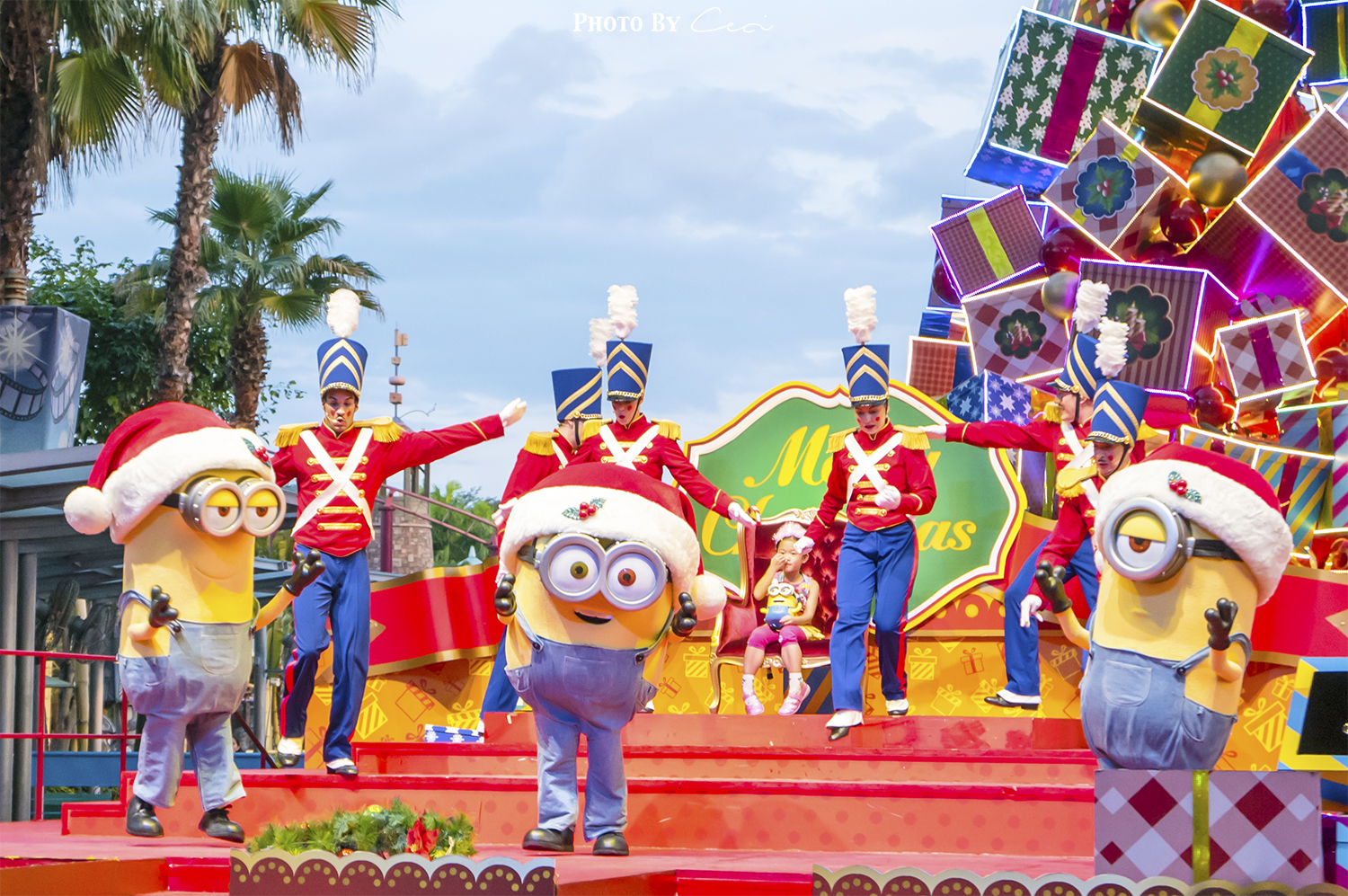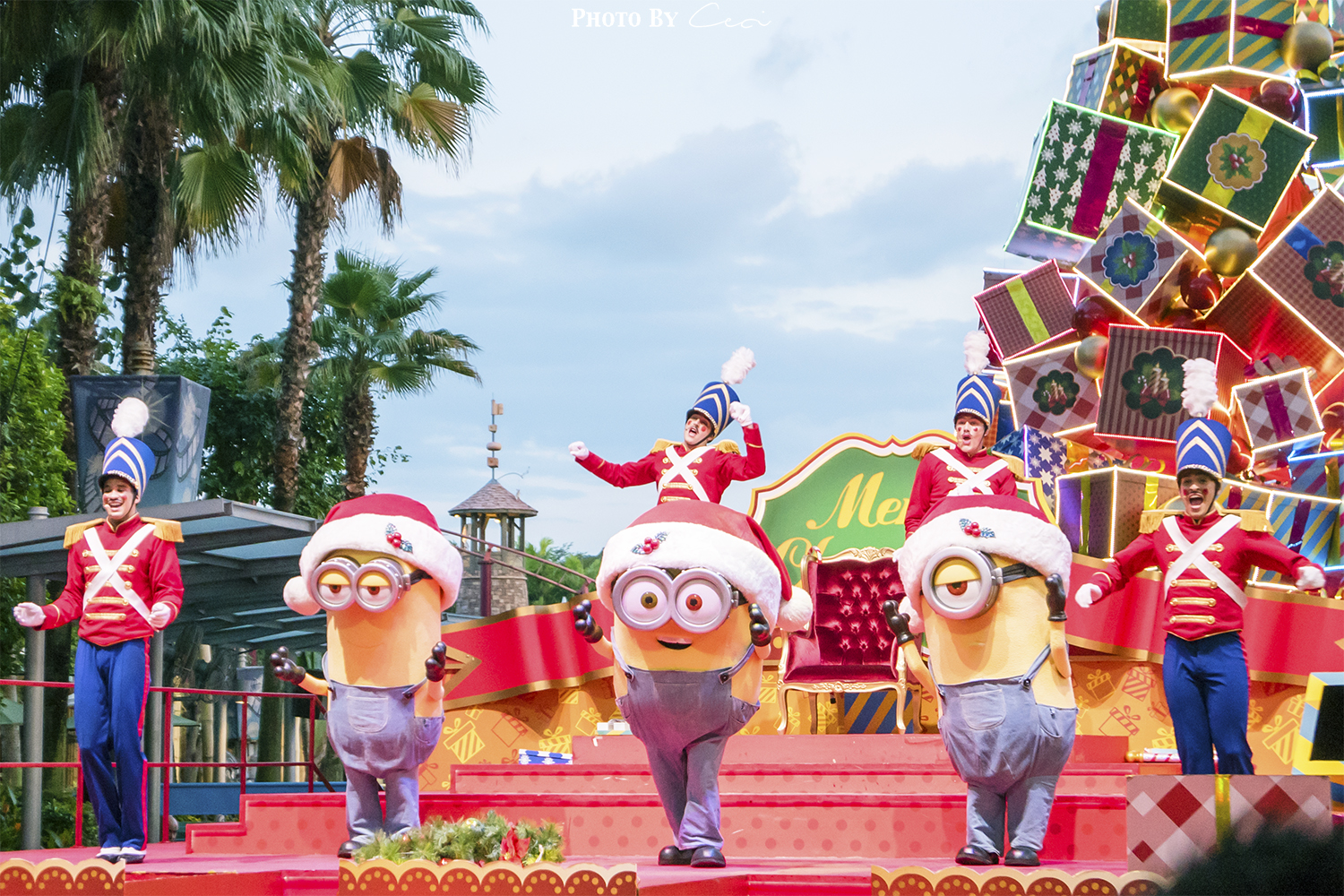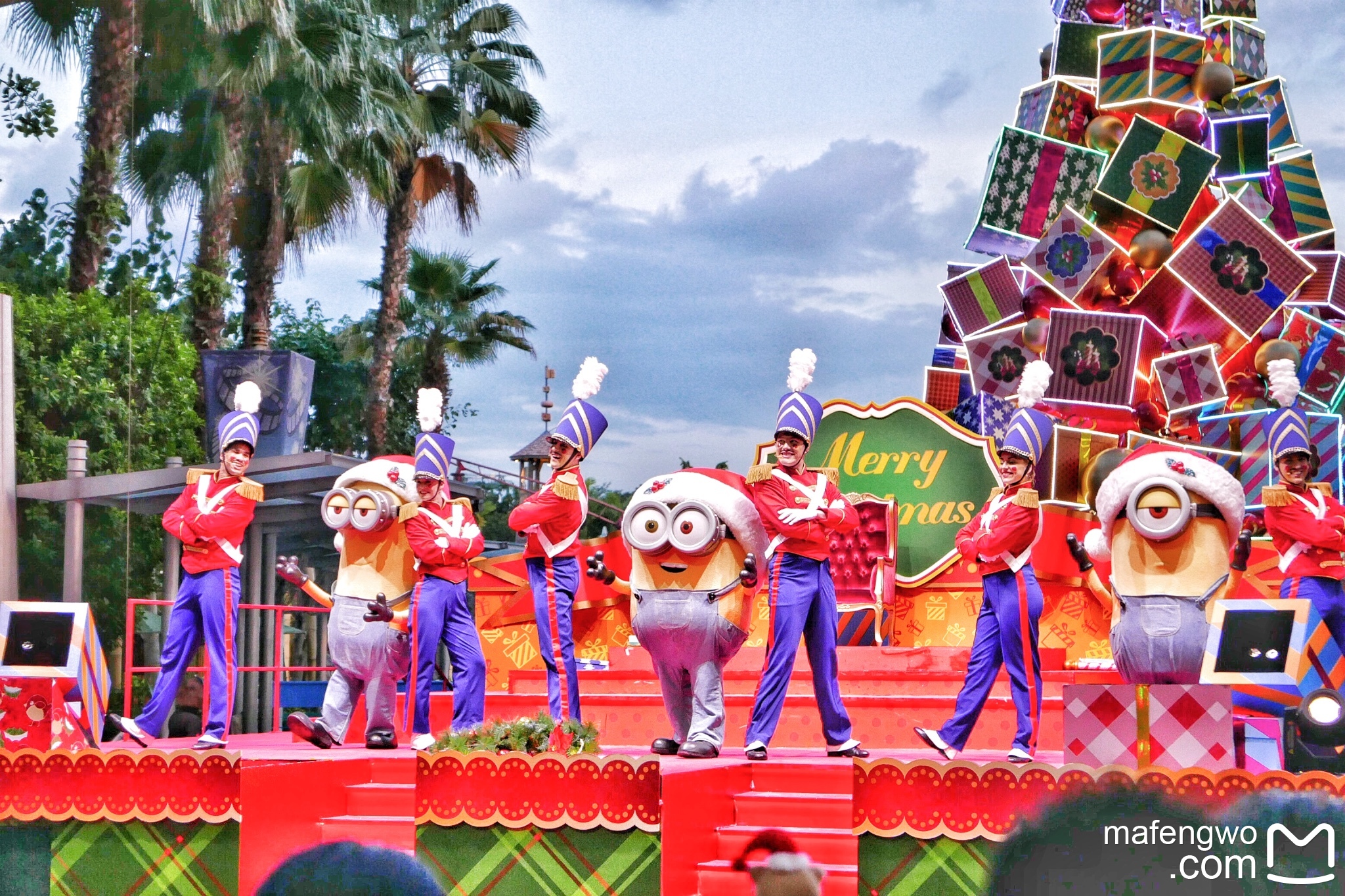 圣诞节期间的专门的表演,靠的是小黄人卖萌,以及和观众的互动了;围观人群那必须是非常非常非常多的。