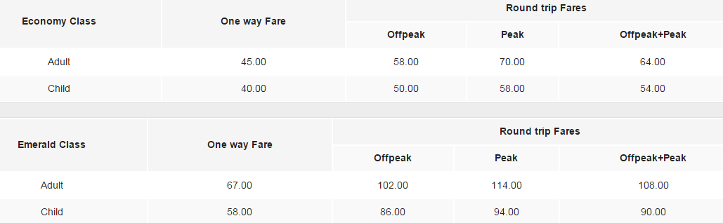 船票价格如下,周末和节假日为旅游旺季,价格比平日要贵一些,购买往返票比购买单程要划算不少。