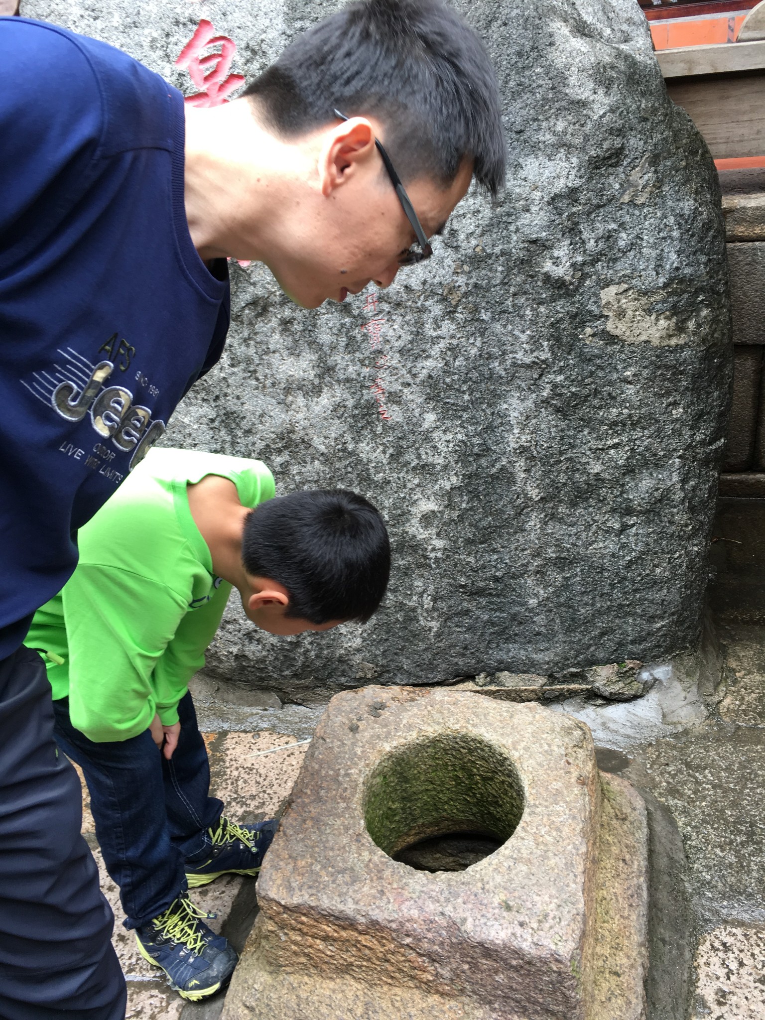 “灵泉井”应该是口古井了。里面水还很清澈。豆咪看到里面水里有很多人扔进去的硬币,好惊讶!