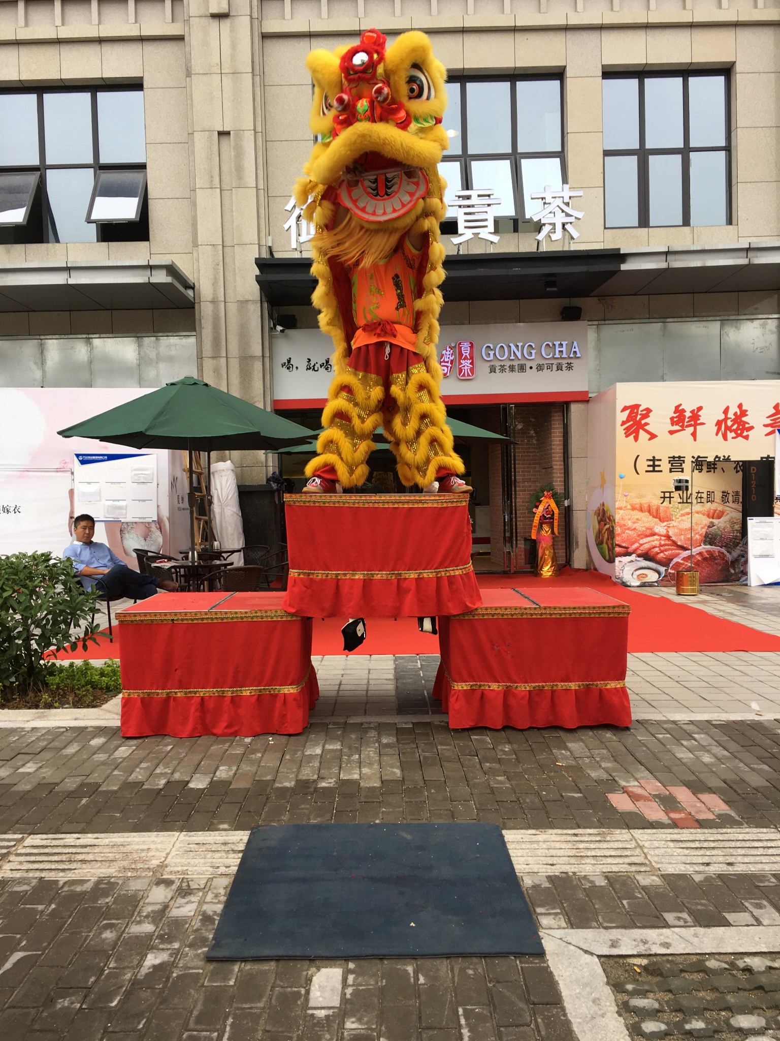 路过万达广场,看到有个新开业的店铺请了舞狮表演。我们驻足观看了一会儿。我觉得还挺精彩的。锣鼓声太响了,小儿子一直嫌吵。