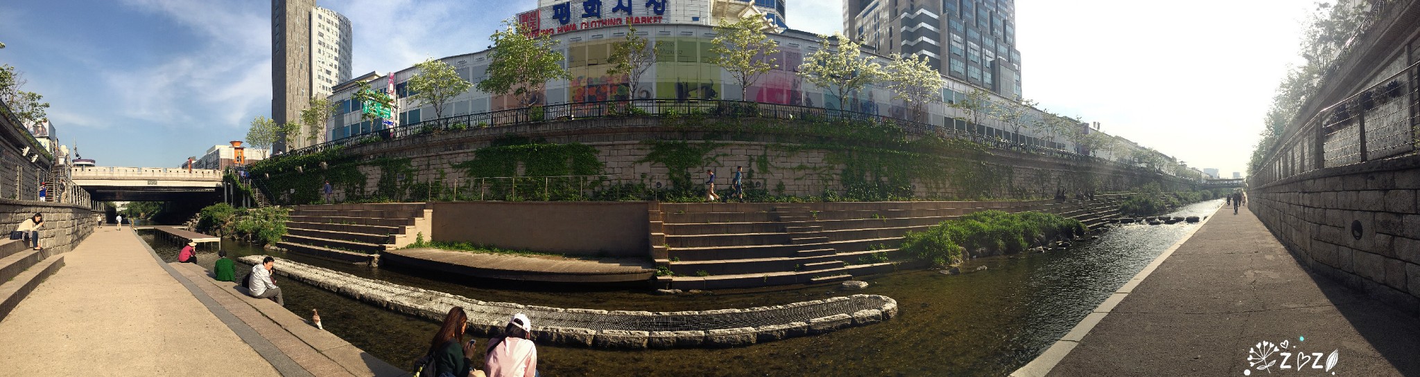 清溪川就在附近 我们就这么随意走着 晴朗好天气 让人心欢喜