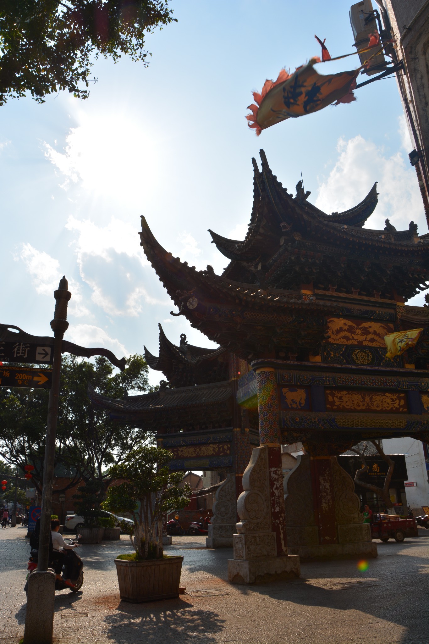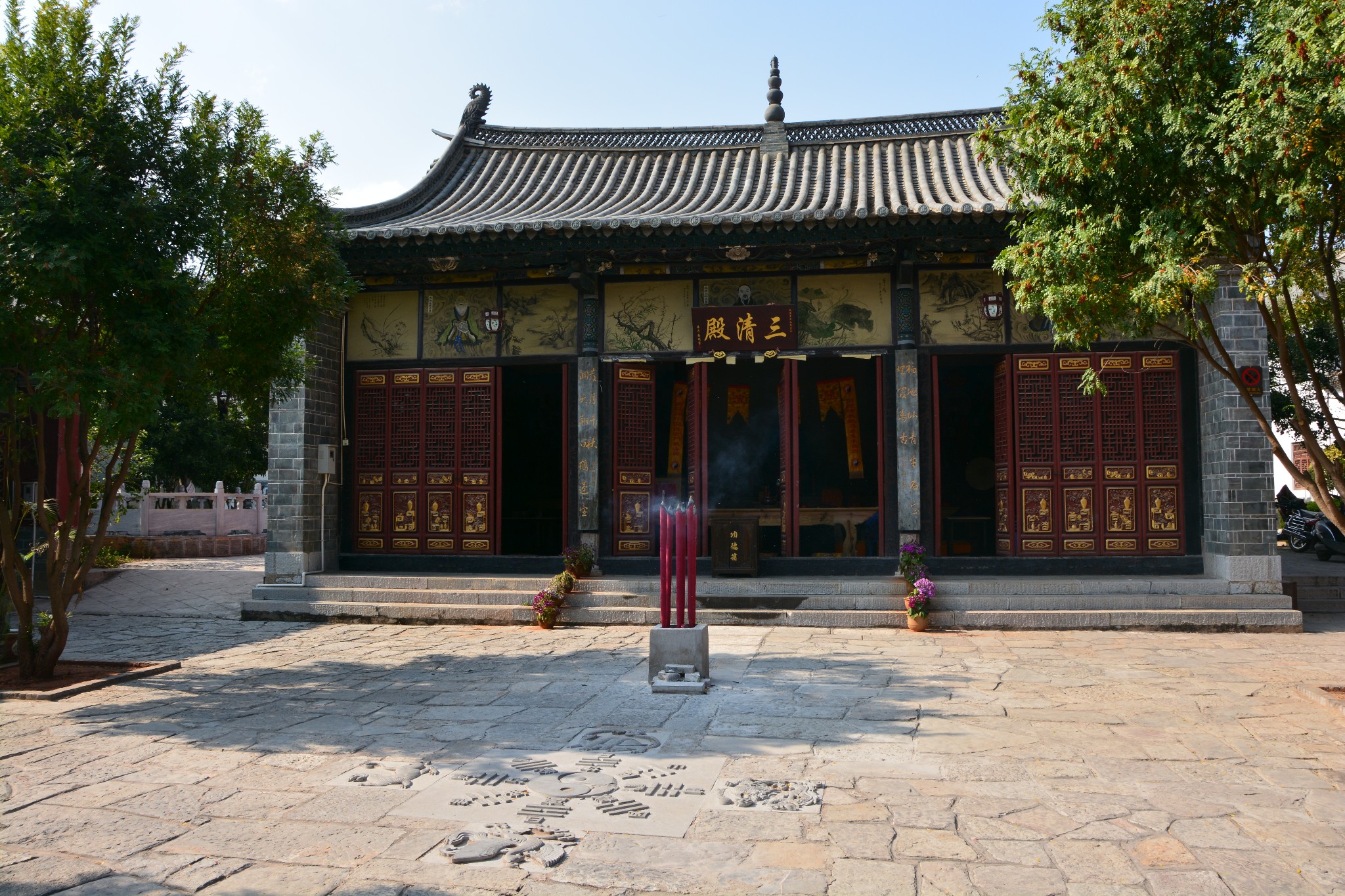 走在建水古城的街道上,不知不觉就会走进某座道观或者寺院。道观内人烟稀少,除了我这个纯粹游客之外只有印度一家四口在这里游荡,他们用简化版参拜湿婆的礼节对着三清道尊拜了几拜便匆匆离去,估计他们也不清楚这座大殿里到底供的是哪位神仙,而寺院的香火就要旺盛得多,虽然尽是白发苍苍的老婆婆聚在这里念经,但好歹人气还是有的,总不至于显得冷清惨淡。