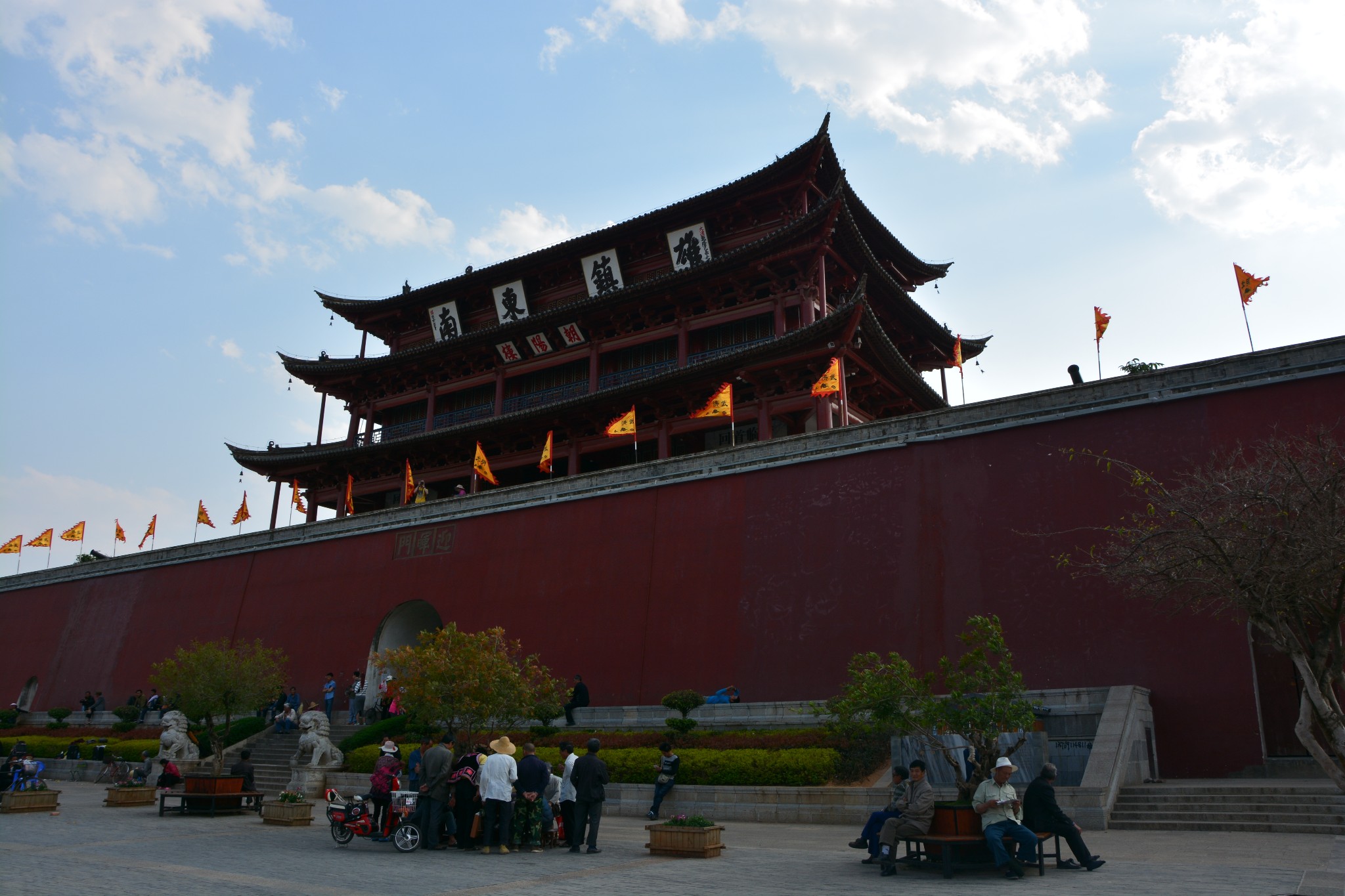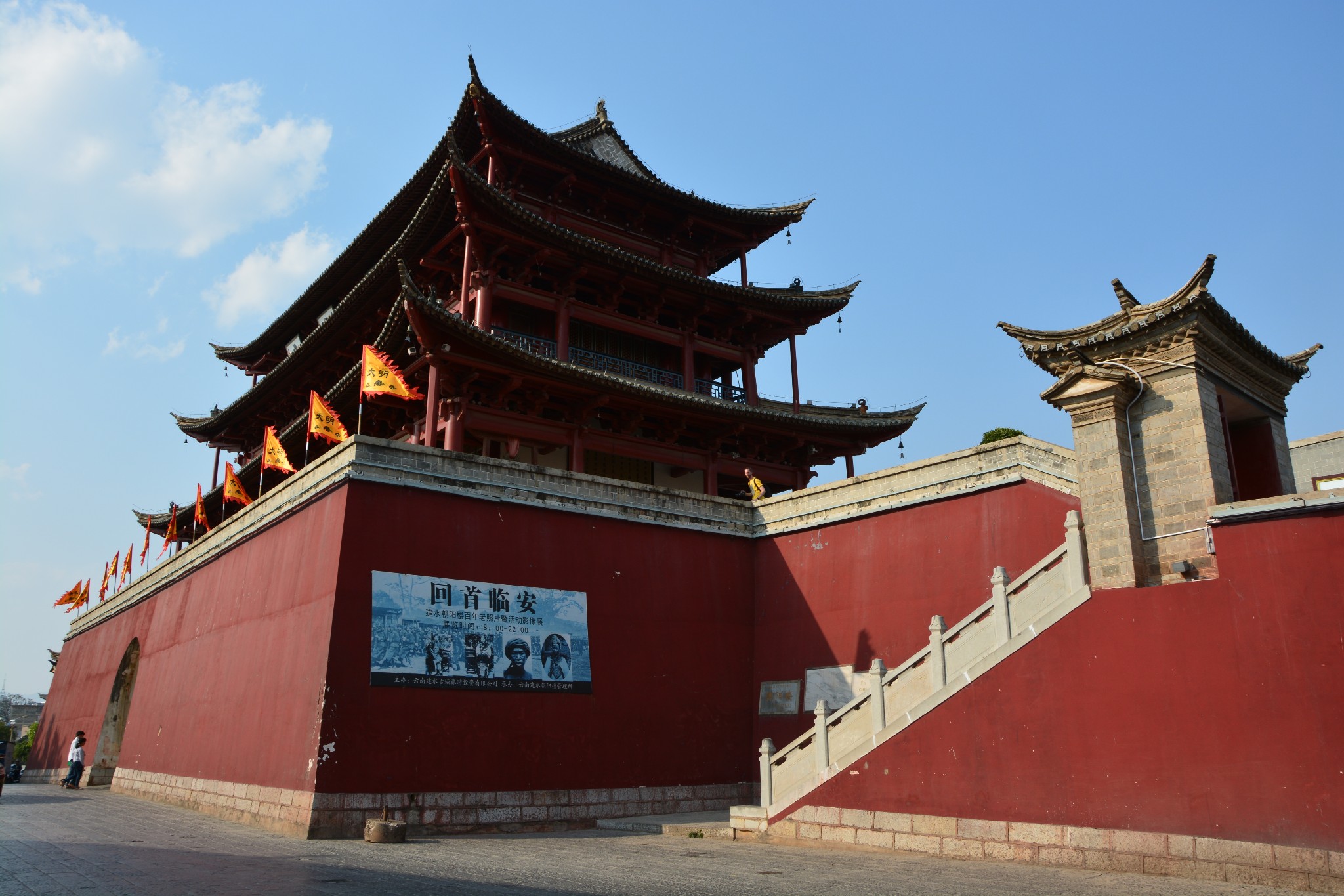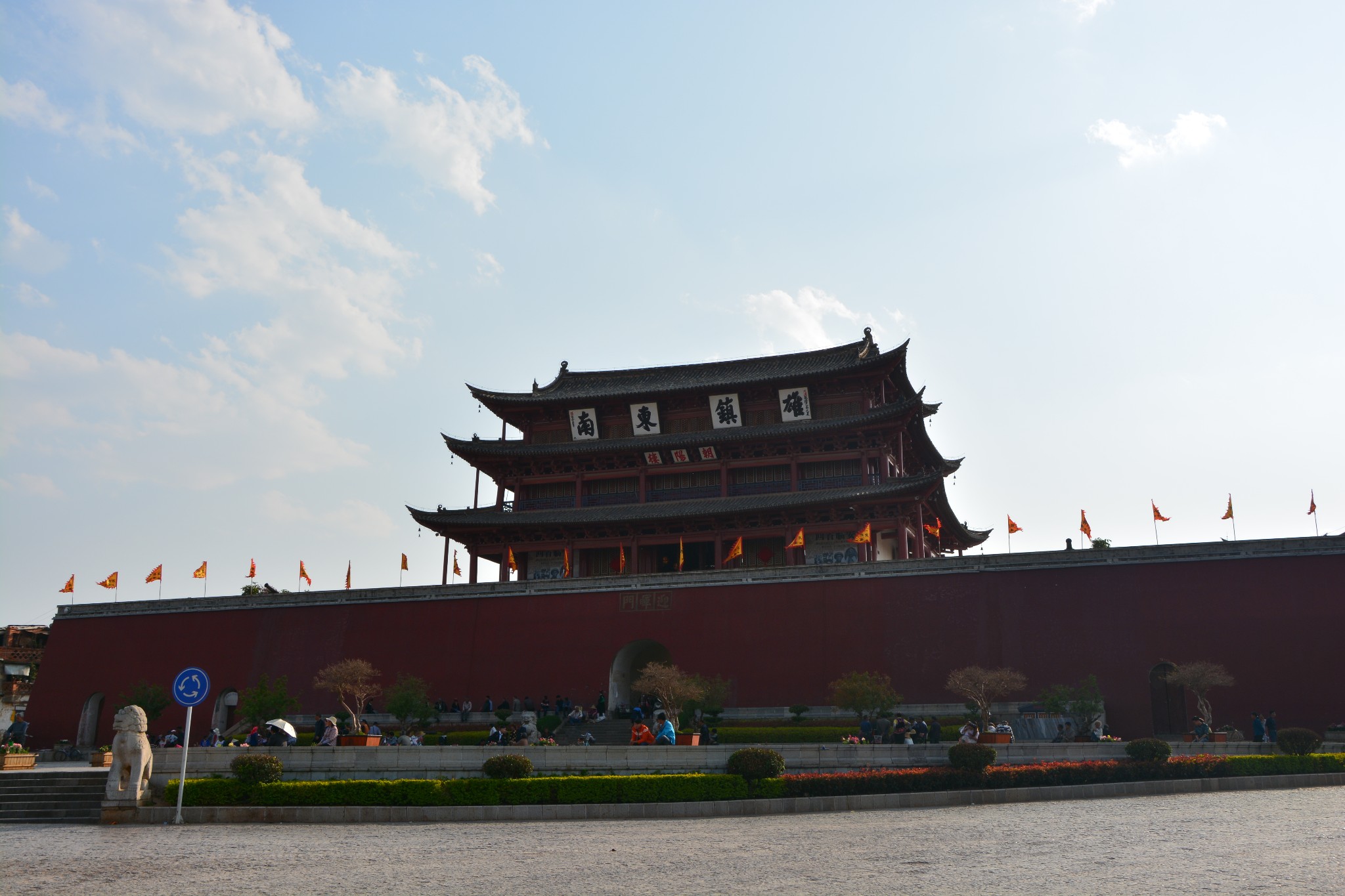 唐朝元和年间,当时的南诏政权在建水筑造惠历城,原为夯土城墙。明朝初年,朱元璋老先生遣军平定云南后,在此设置“临安卫”,筑临安卫城,在原有土城的基础上改造扩建为砖石结构。临安城有四座城门,东门“迎晖门”,南门“阜安门",西门”清远门“,北门”永贞门“。明朝末年,西南北三座城门毁于战火,仅存东面城楼。《建水州志》证有“东楼凌汉”一景,谓之曰:“东城楼,高百尺,干霄插大,下瞰城市,烟火万家,风光无际,旭日东升,晖光远映,遥望城楼,如黄鹤,如岳阳,南中大观。”