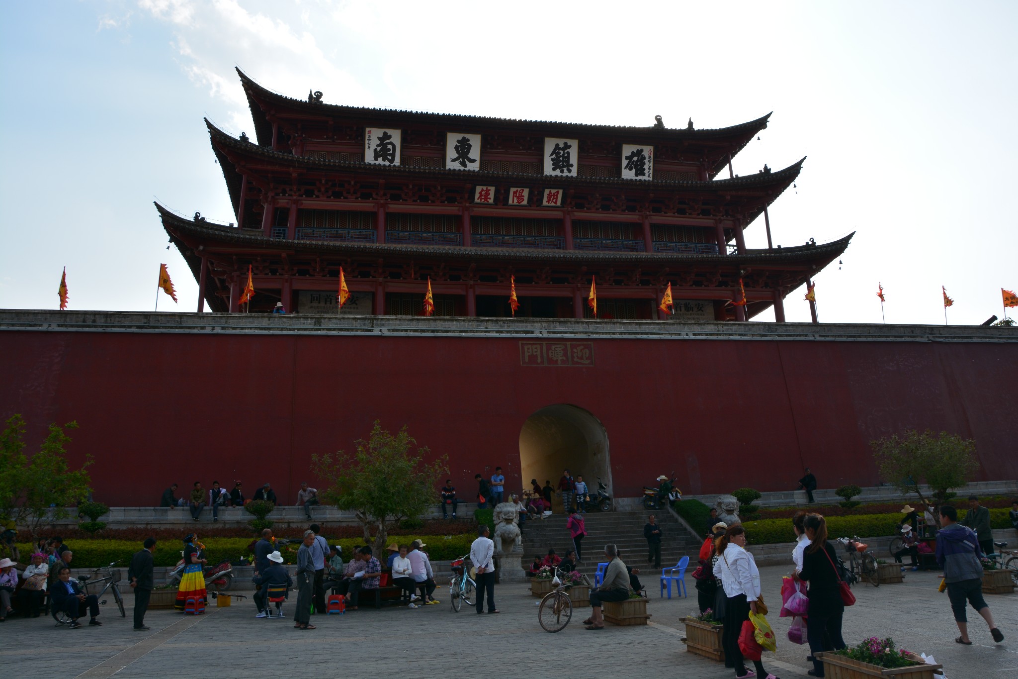 如今的朝阳楼下已成为当地百姓闲散聚会和游玩唱戏的根据地,在西坠的斜阳里,虽然我看不清这些普通百姓的眉眼,但是他们围坐在古老的城楼下,吹拉弹唱,让人不禁愿意凑上去仔细倾听。尽管戏文的内容我也听不懂,可是我却久久不忍离去,在这些沉淀着岁月痕迹的吟唱中,历史的大门似乎正向我徐徐敞开。