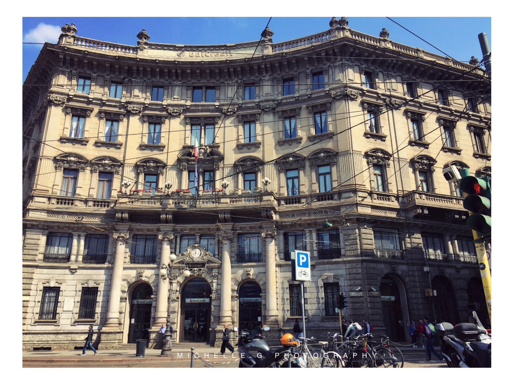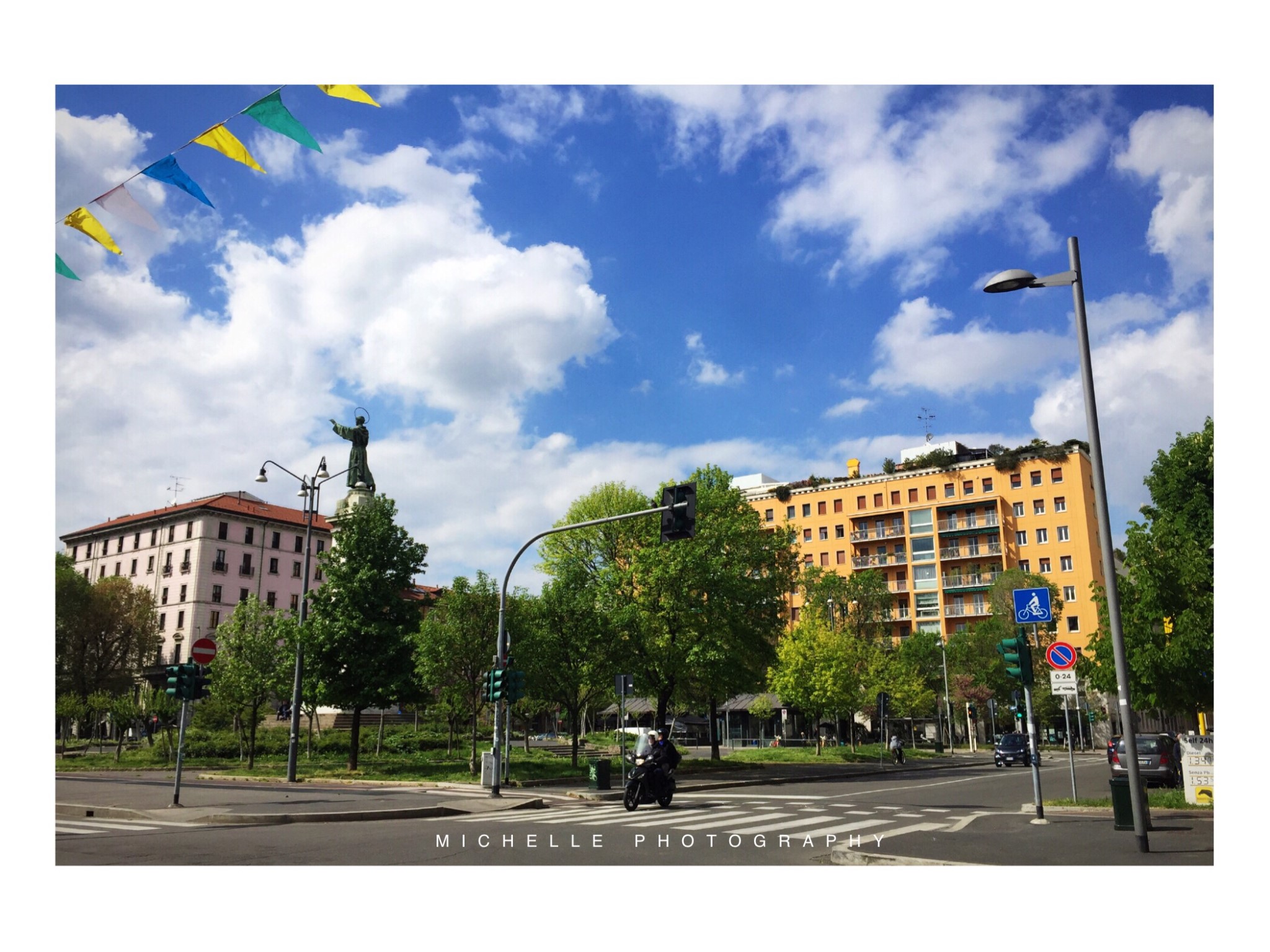 四月份是米兰很好的季节,白天大约22度,每天拉开窗帘都是一派晴朗的景象,虽说是出差,但明媚的阳光配上异国的建筑,还是让人放松不少。
