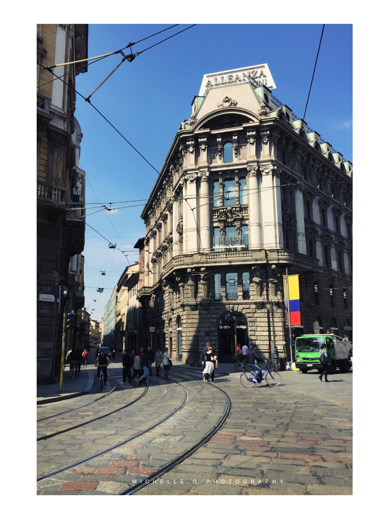 在米兰待了十天,慢慢发现大多数去的地方都在中心区,米兰大教堂的方圆几公里内。中心区里的马路都不太宽,从两边往中间依次是人行道、机动车道、很窄的人行道和列车轨道,还有很多像胡同一样的巷子。巷子里的路面大多是石板铺成,两侧的墙壁透着淡淡的古旧气息,一些列车轨道下被生长力旺盛的野草覆盖,还有不止一处的城门,这座城市丝毫没有遮掩它的历史。
