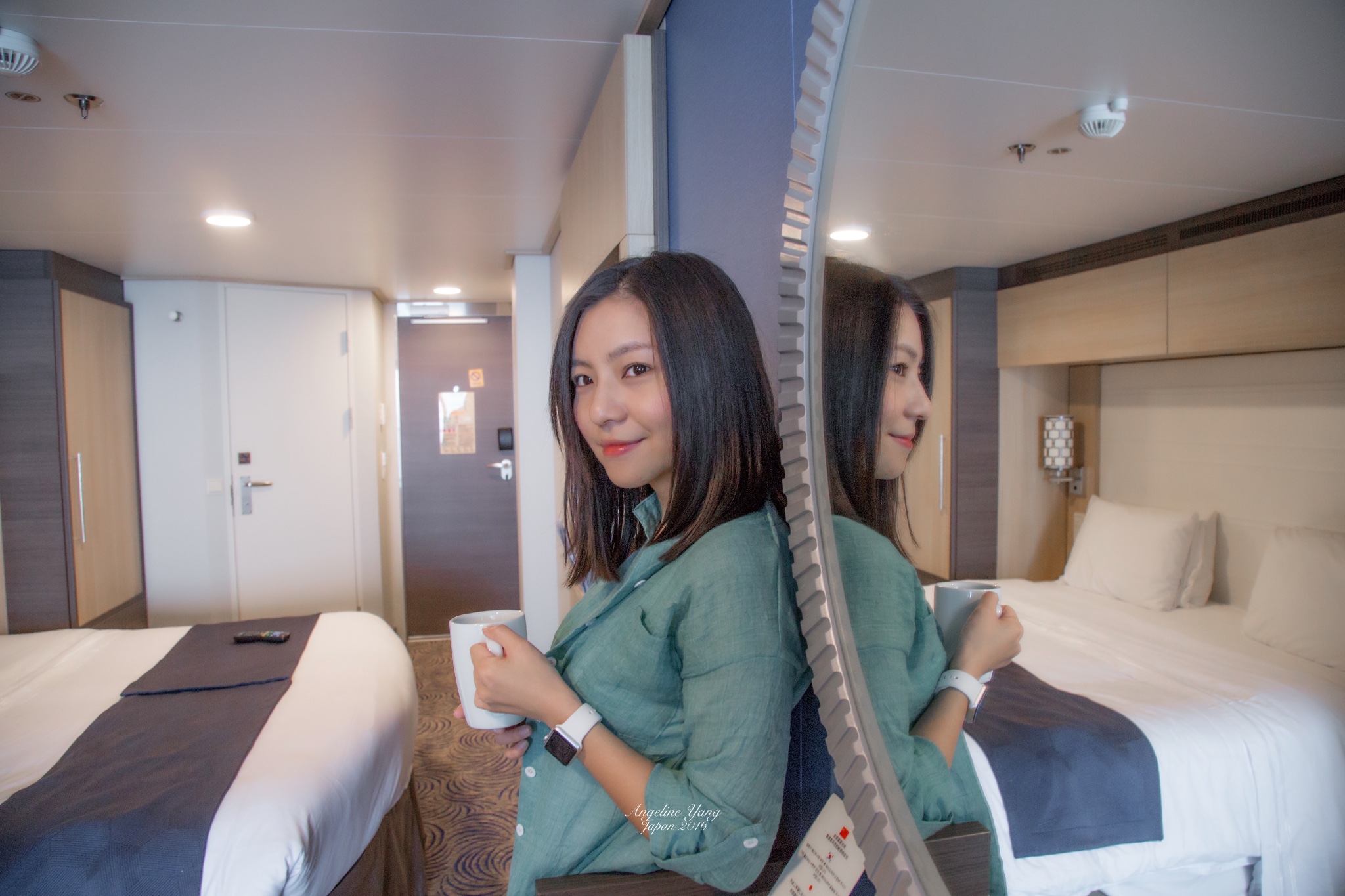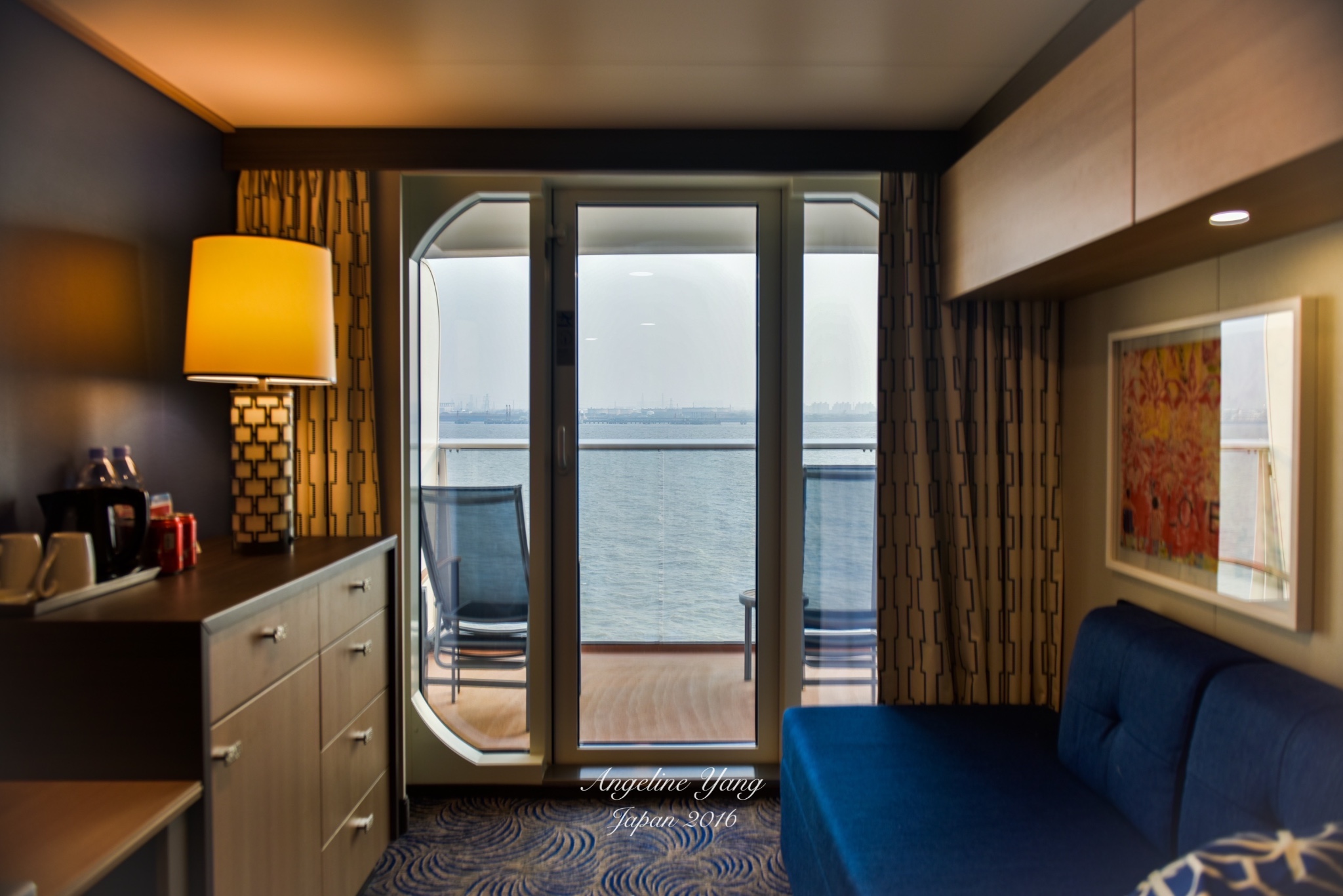 在码头等行李大厅托运完箱子,快速领完房卡后直接就过安检登轮咯。初初上船,爱上我的海景大阳台,天天都可以什么都不做,吃了睡,睡了吃的日子就要来了。