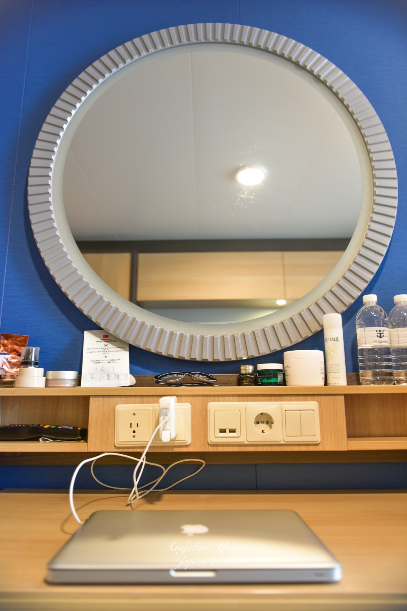 看到这些插座简直开心到不行,根本不用带什么拖线板和转换头。两个USB,两个国内正常插座,还有一个国际通用圆头插座,电脑、手机、充电宝、吹风机,同时插上也完全没问题,一百个赞。第一天有两瓶免费矿泉水,之后就没有咯,想喝水可以烧,也可以去自助餐厅随便喝随便拿。