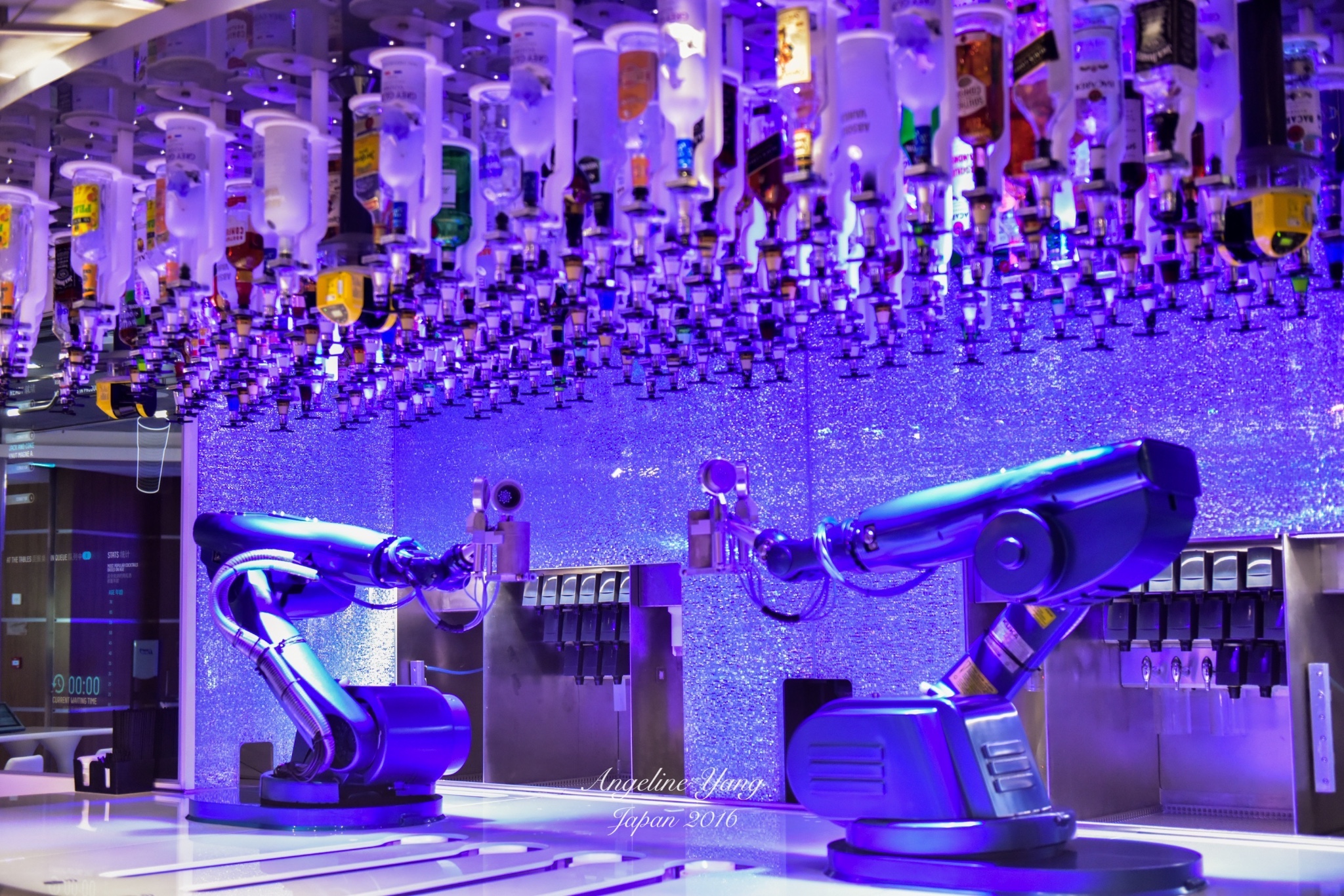 机器人调酒,音乐很嗨。那么多酒看看也醉了,我这个半杯倒还是走吧
