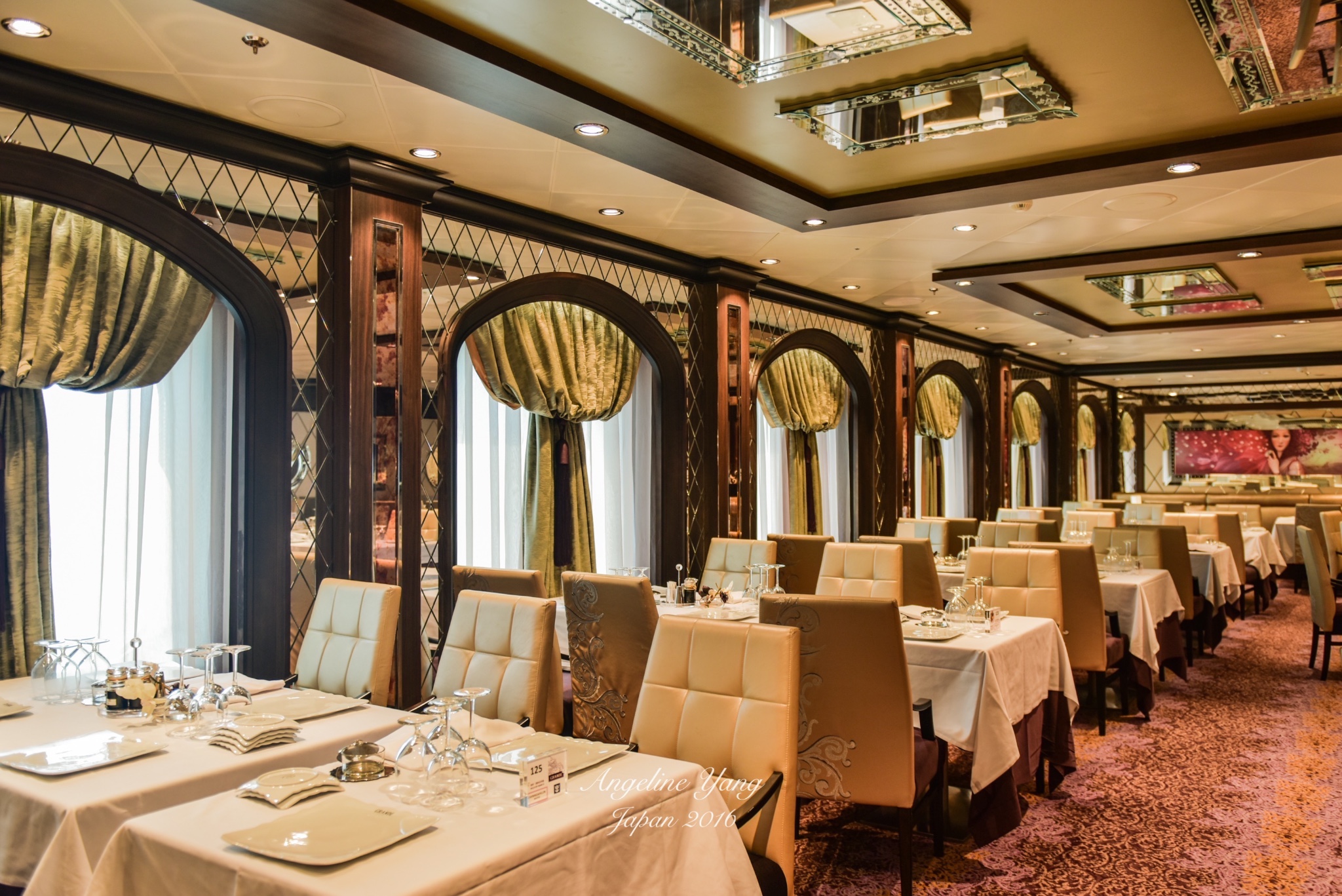 3楼经典欧式的Grande格兰迪主题餐厅,免费的,晚餐菜式比较丰富,午餐是不开的哦。服务员态度都相当好, 东南亚 人居多,老年人也不用担心不会英文,有中文菜单和服务员哒,看图片点也行。用餐时间每个人上船前都写在船卡上,我的是17:30,还有一批是20:30。