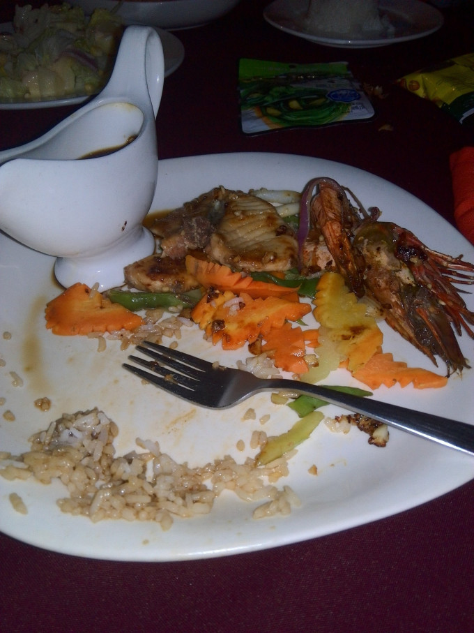 上岛的第一顿,海鲜饭,别问我有些什么,太饿了,没吃出来,也别问我多少钱,FAT请客的,在此特别鸣谢FAT童鞋,不远万里从云南赶来请我吃饭,还让我蹭车蹭船,饱餐之后,就是美美地睡上一觉,第二天复习潜,不用早起,也是在岛上唯一能睡过7点的一天,这是后话~