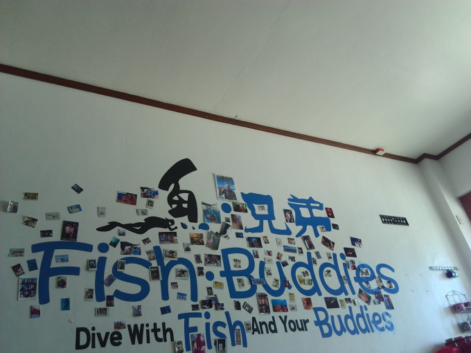 这就是岛上的中文潜店,老板是一个网名叫疯子的男人?管他呢?这个不重要,重要的是,他很少在店里,只有老板娘兢兢业业的守着店,迎来送往,待客热情,所以,想去的童鞋们记得要给老板娘带点好吃的,鼓励或者说奖励她~~~