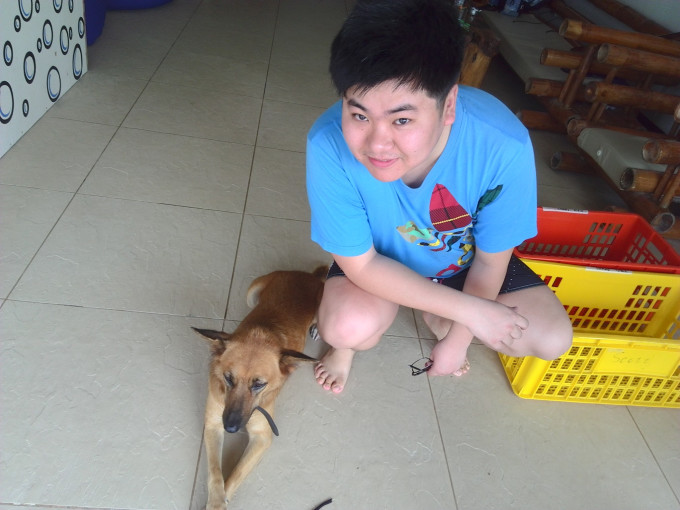 好吧,你们猜对了,蹲着的是我,趴在地上的就是老板娘,疯子的女朋友,这个岛上知名度最高的岛民,它熟悉妈妈拍丝瓜岛的每一条路,每一家酒店,多次尾随我回到旅店,然后,眼巴巴的看着我吃肉,做出各种卖萌造型,把我盘子里的肉骗到它的嘴里。姐姐,我也是食肉动物啊~~~