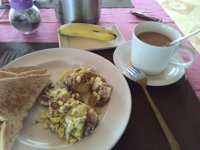 旅店的早餐,自费150P,含熏肉,蘑菇,烤面包,香蕉,还有咖啡或者茶,当然,唯一的两片熏肉已经在老板娘的嘴里了,老板娘是谁?哥们,你来晚了,看看上图就知道了~~~