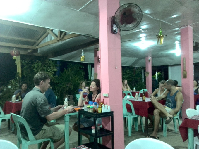 这家是岛上不错的饭店,记得早点去,或者晚点,不然,你会等很久很久,东南亚的效率,你懂的,对了,记得喷上足够的驱蚊水,还有,要习惯苍蝇,它们永远和你同在,另外,如果你是正好饭点去的,那你还能看到老板娘和它的小伙伴们,眼巴巴的看着你,然后,做出各种卖萌的造型,每天如此重复着,骗取好心人的肉~~~